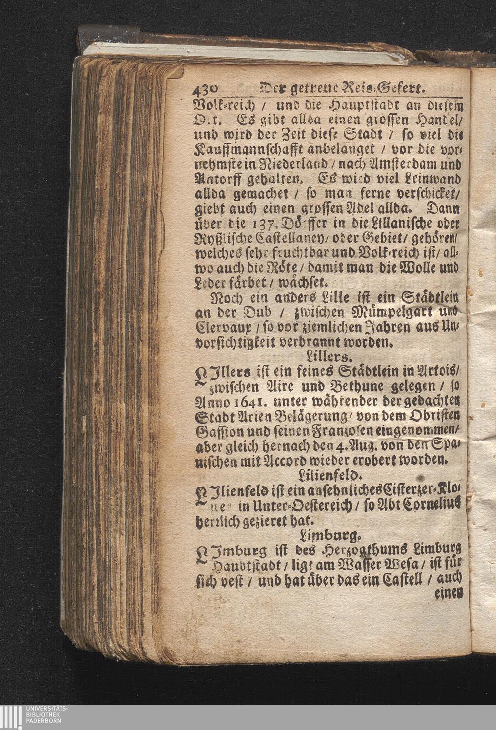 Der getreue Reiß-Gefert durch Ober- und Nieder-Teutschland : Das ist: Grundrichtige und ausführliche Abhandlung derer jenigen Residenzien/ Städte/ Schlösser/ Vestungen/ Städtlein und nahmhafften Markflecken/ welche so wol in Ober- als Nieder-Teutschland/ einem Reisenden sich hin und wieder vorstellig machen und zwar solcher Gestalt/ daß darinn derer Ursprung/ Aufnahm/ Fortification/ Raritäten/ herrliche Gebäue/ und Glück- und Unglücks-Fälle bis auf gegenwärtige Zeit fortgesetzt enthalten. Dabey auch noch über das ein absonderlicher kurz-gefasster Weegweiser angehänget zu finden/ worinnen klärlich zu sehen, wie viel Meilen ein Ort von dem andern entlegen. Alles aus denen bewährtesten Scribenten hervorgesuchet/ zum Nutz-Ergötzen mitgetheilet ...