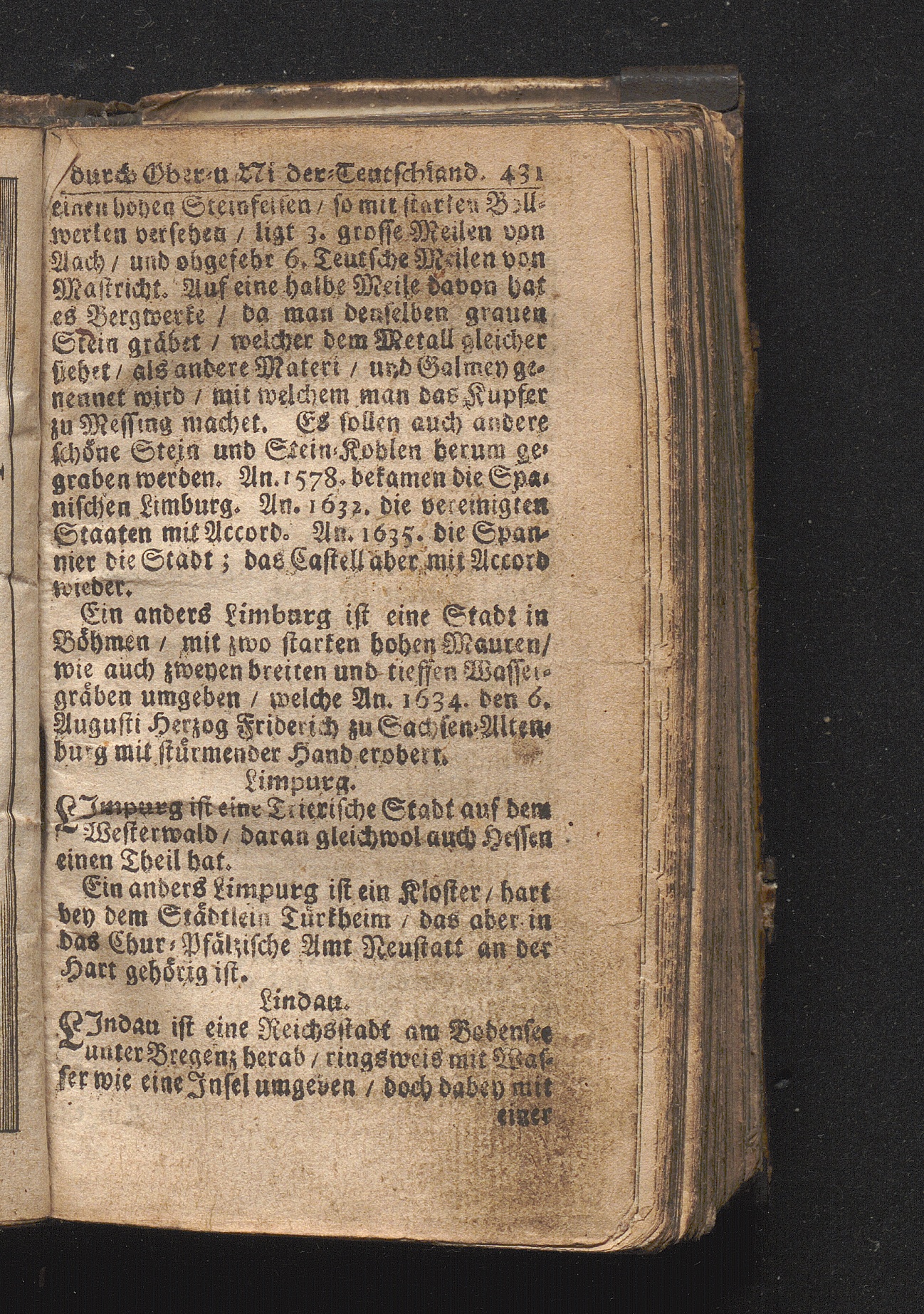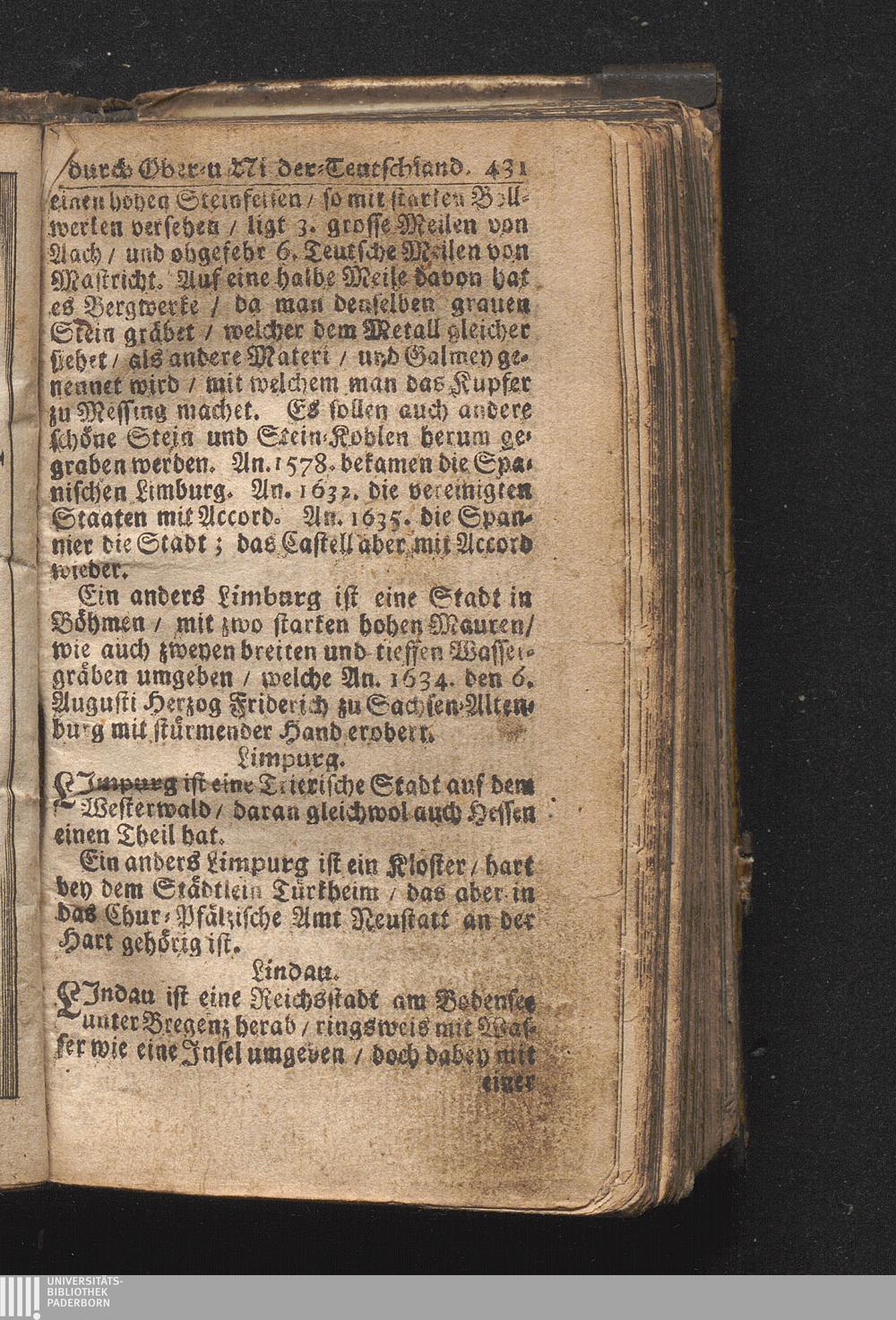 Der getreue Reiß-Gefert durch Ober- und Nieder-Teutschland : Das ist: Grundrichtige und ausführliche Abhandlung derer jenigen Residenzien/ Städte/ Schlösser/ Vestungen/ Städtlein und nahmhafften Markflecken/ welche so wol in Ober- als Nieder-Teutschland/ einem Reisenden sich hin und wieder vorstellig machen und zwar solcher Gestalt/ daß darinn derer Ursprung/ Aufnahm/ Fortification/ Raritäten/ herrliche Gebäue/ und Glück- und Unglücks-Fälle bis auf gegenwärtige Zeit fortgesetzt enthalten. Dabey auch noch über das ein absonderlicher kurz-gefasster Weegweiser angehänget zu finden/ worinnen klärlich zu sehen, wie viel Meilen ein Ort von dem andern entlegen. Alles aus denen bewährtesten Scribenten hervorgesuchet/ zum Nutz-Ergötzen mitgetheilet ...
