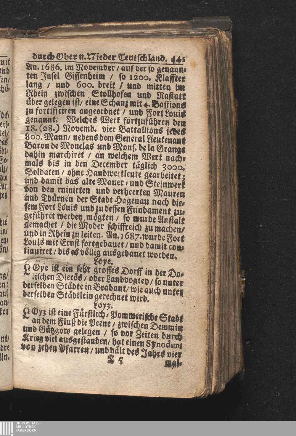 Der getreue Reiß-Gefert durch Ober- und Nieder-Teutschland : Das ist: Grundrichtige und ausführliche Abhandlung derer jenigen Residenzien/ Städte/ Schlösser/ Vestungen/ Städtlein und nahmhafften Markflecken/ welche so wol in Ober- als Nieder-Teutschland/ einem Reisenden sich hin und wieder vorstellig machen und zwar solcher Gestalt/ daß darinn derer Ursprung/ Aufnahm/ Fortification/ Raritäten/ herrliche Gebäue/ und Glück- und Unglücks-Fälle bis auf gegenwärtige Zeit fortgesetzt enthalten. Dabey auch noch über das ein absonderlicher kurz-gefasster Weegweiser angehänget zu finden/ worinnen klärlich zu sehen, wie viel Meilen ein Ort von dem andern entlegen. Alles aus denen bewährtesten Scribenten hervorgesuchet/ zum Nutz-Ergötzen mitgetheilet ...