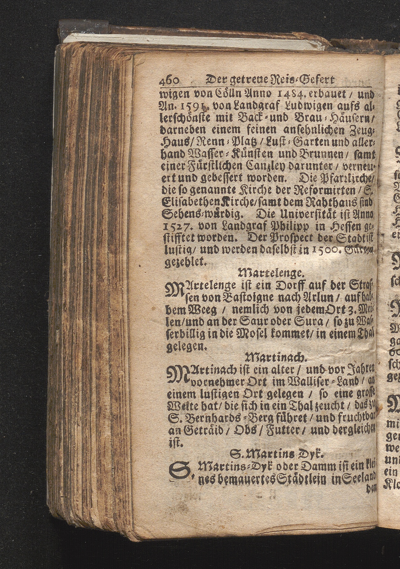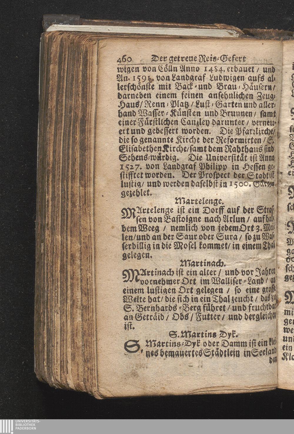Der getreue Reiß-Gefert durch Ober- und Nieder-Teutschland : Das ist: Grundrichtige und ausführliche Abhandlung derer jenigen Residenzien/ Städte/ Schlösser/ Vestungen/ Städtlein und nahmhafften Markflecken/ welche so wol in Ober- als Nieder-Teutschland/ einem Reisenden sich hin und wieder vorstellig machen und zwar solcher Gestalt/ daß darinn derer Ursprung/ Aufnahm/ Fortification/ Raritäten/ herrliche Gebäue/ und Glück- und Unglücks-Fälle bis auf gegenwärtige Zeit fortgesetzt enthalten. Dabey auch noch über das ein absonderlicher kurz-gefasster Weegweiser angehänget zu finden/ worinnen klärlich zu sehen, wie viel Meilen ein Ort von dem andern entlegen. Alles aus denen bewährtesten Scribenten hervorgesuchet/ zum Nutz-Ergötzen mitgetheilet ...