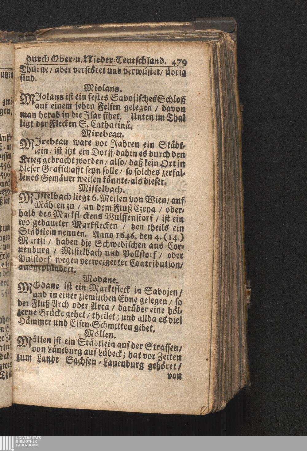 Der getreue Reiß-Gefert durch Ober- und Nieder-Teutschland : Das ist: Grundrichtige und ausführliche Abhandlung derer jenigen Residenzien/ Städte/ Schlösser/ Vestungen/ Städtlein und nahmhafften Markflecken/ welche so wol in Ober- als Nieder-Teutschland/ einem Reisenden sich hin und wieder vorstellig machen und zwar solcher Gestalt/ daß darinn derer Ursprung/ Aufnahm/ Fortification/ Raritäten/ herrliche Gebäue/ und Glück- und Unglücks-Fälle bis auf gegenwärtige Zeit fortgesetzt enthalten. Dabey auch noch über das ein absonderlicher kurz-gefasster Weegweiser angehänget zu finden/ worinnen klärlich zu sehen, wie viel Meilen ein Ort von dem andern entlegen. Alles aus denen bewährtesten Scribenten hervorgesuchet/ zum Nutz-Ergötzen mitgetheilet ...