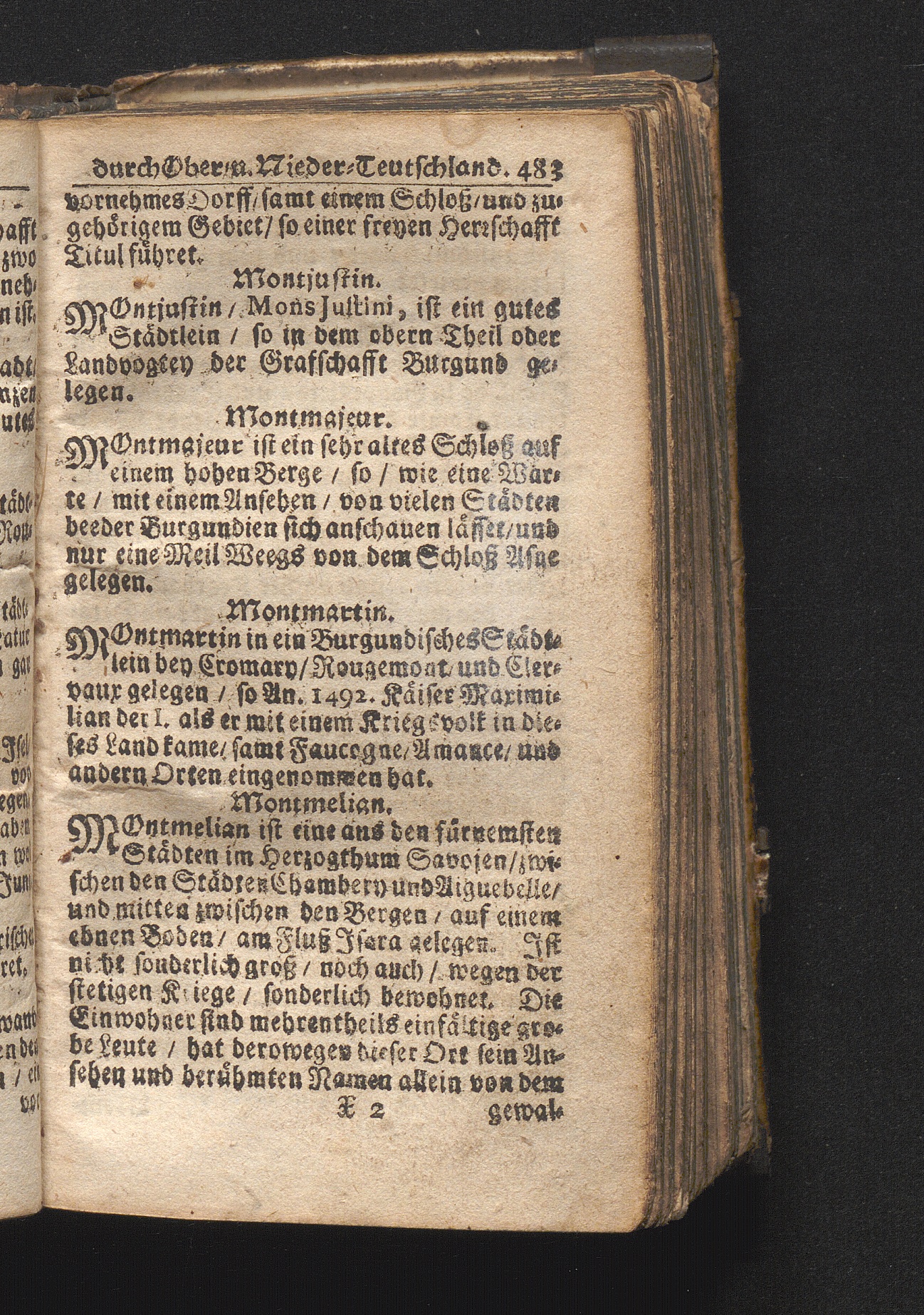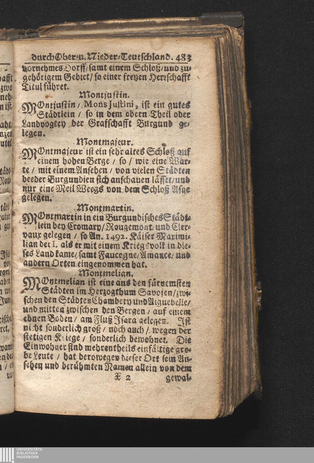 Der getreue Reiß-Gefert durch Ober- und Nieder-Teutschland : Das ist: Grundrichtige und ausführliche Abhandlung derer jenigen Residenzien/ Städte/ Schlösser/ Vestungen/ Städtlein und nahmhafften Markflecken/ welche so wol in Ober- als Nieder-Teutschland/ einem Reisenden sich hin und wieder vorstellig machen und zwar solcher Gestalt/ daß darinn derer Ursprung/ Aufnahm/ Fortification/ Raritäten/ herrliche Gebäue/ und Glück- und Unglücks-Fälle bis auf gegenwärtige Zeit fortgesetzt enthalten. Dabey auch noch über das ein absonderlicher kurz-gefasster Weegweiser angehänget zu finden/ worinnen klärlich zu sehen, wie viel Meilen ein Ort von dem andern entlegen. Alles aus denen bewährtesten Scribenten hervorgesuchet/ zum Nutz-Ergötzen mitgetheilet ...