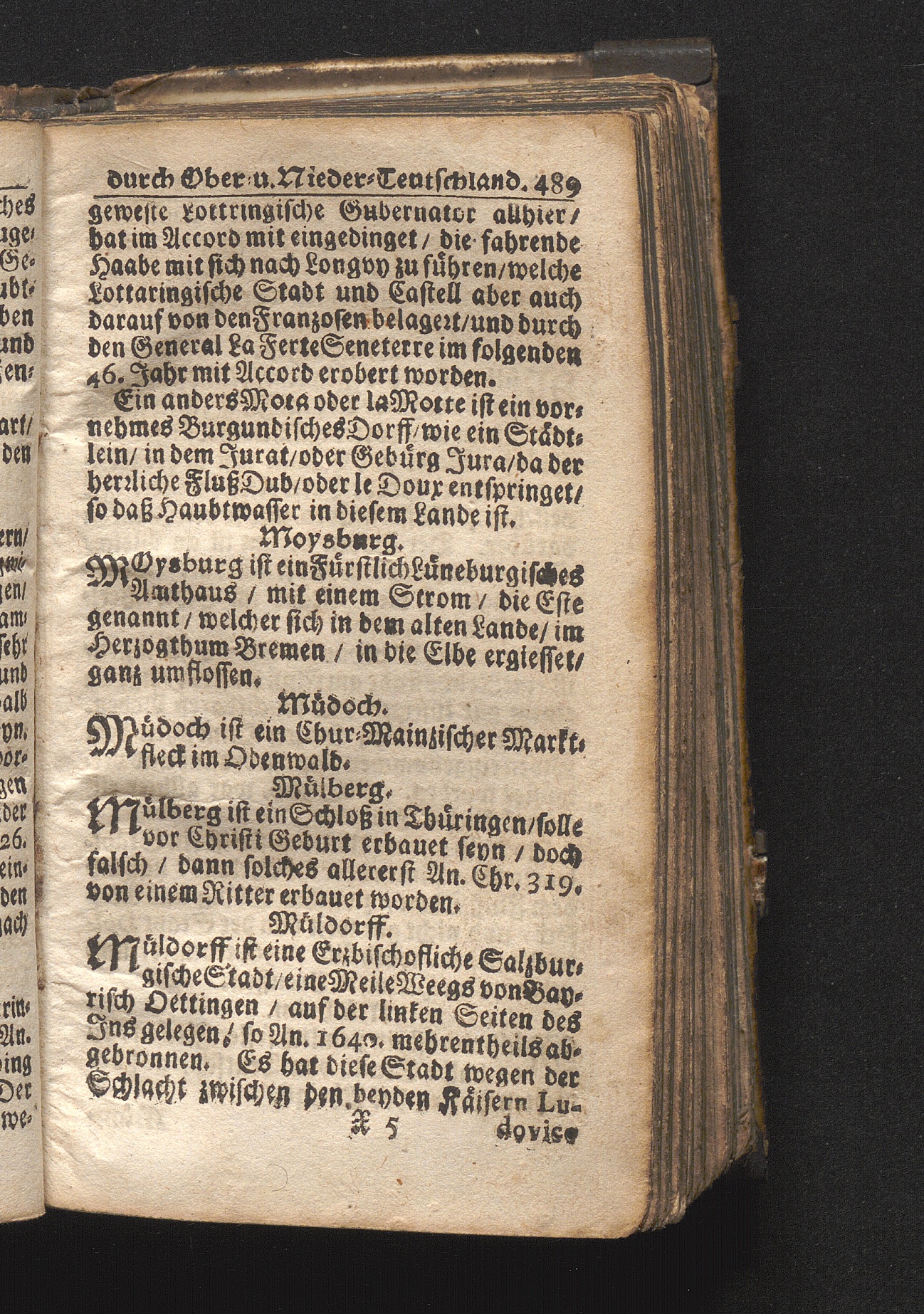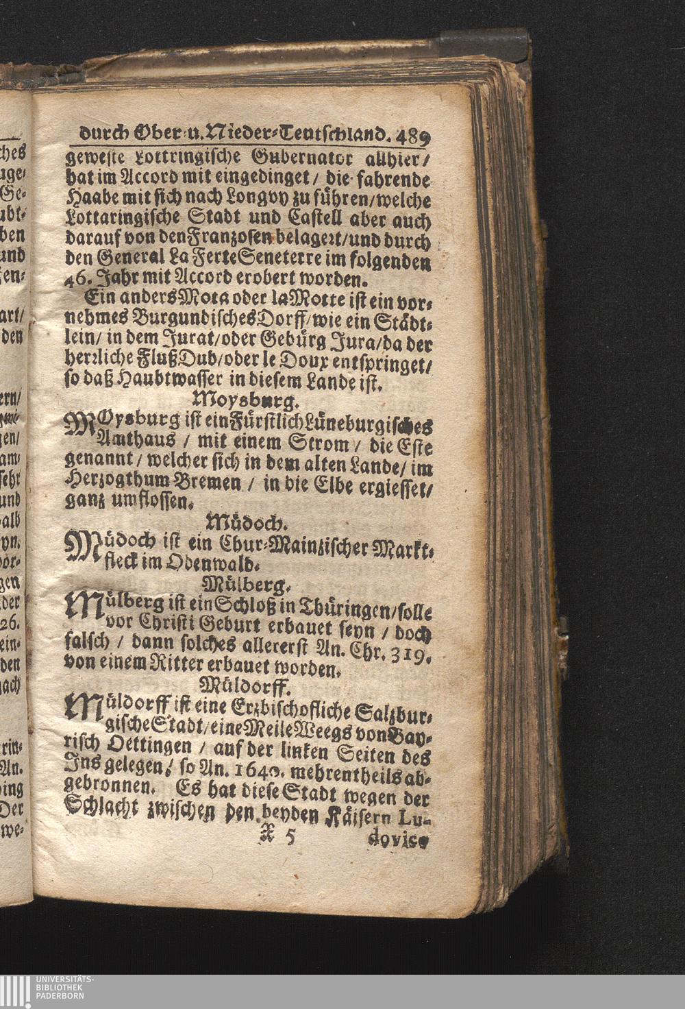 Der getreue Reiß-Gefert durch Ober- und Nieder-Teutschland : Das ist: Grundrichtige und ausführliche Abhandlung derer jenigen Residenzien/ Städte/ Schlösser/ Vestungen/ Städtlein und nahmhafften Markflecken/ welche so wol in Ober- als Nieder-Teutschland/ einem Reisenden sich hin und wieder vorstellig machen und zwar solcher Gestalt/ daß darinn derer Ursprung/ Aufnahm/ Fortification/ Raritäten/ herrliche Gebäue/ und Glück- und Unglücks-Fälle bis auf gegenwärtige Zeit fortgesetzt enthalten. Dabey auch noch über das ein absonderlicher kurz-gefasster Weegweiser angehänget zu finden/ worinnen klärlich zu sehen, wie viel Meilen ein Ort von dem andern entlegen. Alles aus denen bewährtesten Scribenten hervorgesuchet/ zum Nutz-Ergötzen mitgetheilet ...