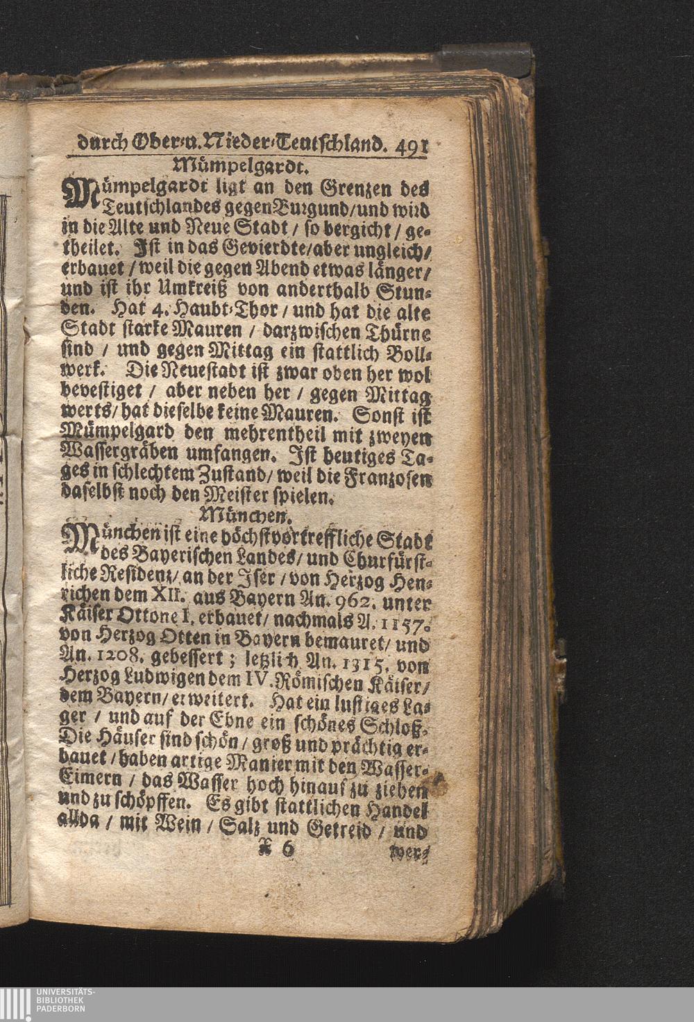 Der getreue Reiß-Gefert durch Ober- und Nieder-Teutschland : Das ist: Grundrichtige und ausführliche Abhandlung derer jenigen Residenzien/ Städte/ Schlösser/ Vestungen/ Städtlein und nahmhafften Markflecken/ welche so wol in Ober- als Nieder-Teutschland/ einem Reisenden sich hin und wieder vorstellig machen und zwar solcher Gestalt/ daß darinn derer Ursprung/ Aufnahm/ Fortification/ Raritäten/ herrliche Gebäue/ und Glück- und Unglücks-Fälle bis auf gegenwärtige Zeit fortgesetzt enthalten. Dabey auch noch über das ein absonderlicher kurz-gefasster Weegweiser angehänget zu finden/ worinnen klärlich zu sehen, wie viel Meilen ein Ort von dem andern entlegen. Alles aus denen bewährtesten Scribenten hervorgesuchet/ zum Nutz-Ergötzen mitgetheilet ...