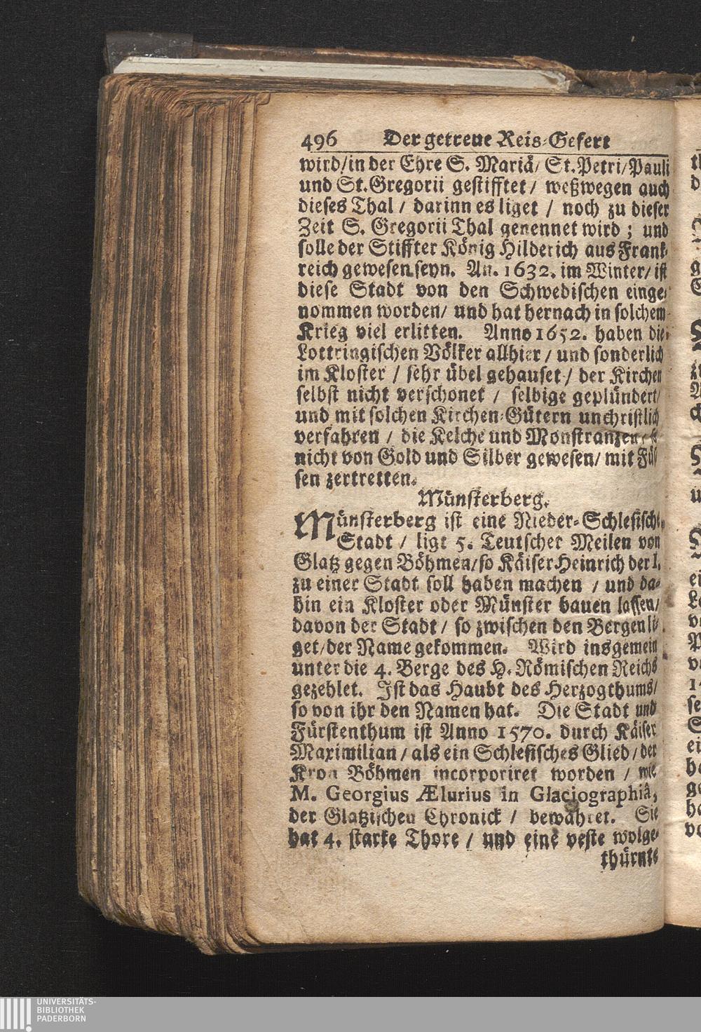 Der getreue Reiß-Gefert durch Ober- und Nieder-Teutschland : Das ist: Grundrichtige und ausführliche Abhandlung derer jenigen Residenzien/ Städte/ Schlösser/ Vestungen/ Städtlein und nahmhafften Markflecken/ welche so wol in Ober- als Nieder-Teutschland/ einem Reisenden sich hin und wieder vorstellig machen und zwar solcher Gestalt/ daß darinn derer Ursprung/ Aufnahm/ Fortification/ Raritäten/ herrliche Gebäue/ und Glück- und Unglücks-Fälle bis auf gegenwärtige Zeit fortgesetzt enthalten. Dabey auch noch über das ein absonderlicher kurz-gefasster Weegweiser angehänget zu finden/ worinnen klärlich zu sehen, wie viel Meilen ein Ort von dem andern entlegen. Alles aus denen bewährtesten Scribenten hervorgesuchet/ zum Nutz-Ergötzen mitgetheilet ...