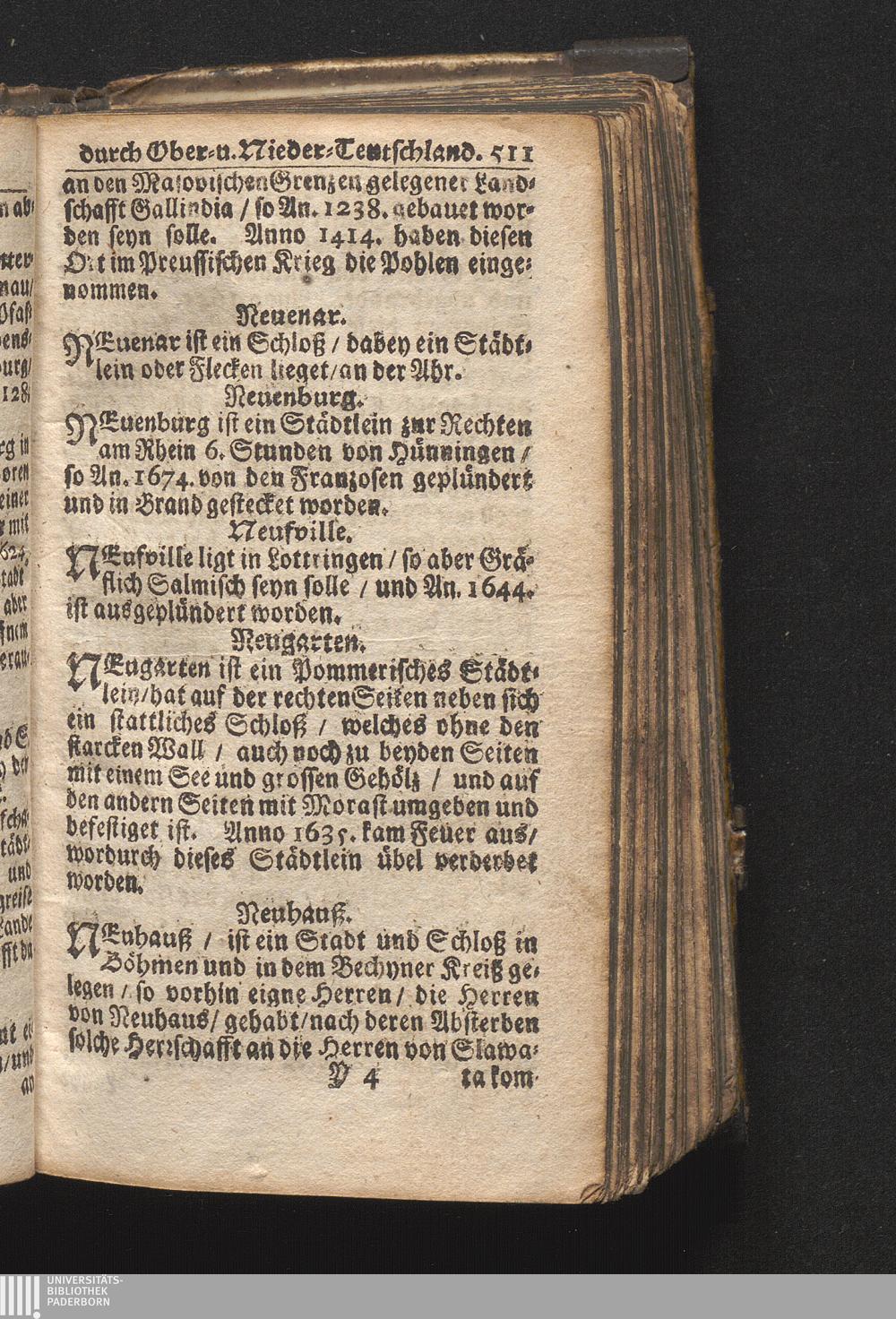Der getreue Reiß-Gefert durch Ober- und Nieder-Teutschland : Das ist: Grundrichtige und ausführliche Abhandlung derer jenigen Residenzien/ Städte/ Schlösser/ Vestungen/ Städtlein und nahmhafften Markflecken/ welche so wol in Ober- als Nieder-Teutschland/ einem Reisenden sich hin und wieder vorstellig machen und zwar solcher Gestalt/ daß darinn derer Ursprung/ Aufnahm/ Fortification/ Raritäten/ herrliche Gebäue/ und Glück- und Unglücks-Fälle bis auf gegenwärtige Zeit fortgesetzt enthalten. Dabey auch noch über das ein absonderlicher kurz-gefasster Weegweiser angehänget zu finden/ worinnen klärlich zu sehen, wie viel Meilen ein Ort von dem andern entlegen. Alles aus denen bewährtesten Scribenten hervorgesuchet/ zum Nutz-Ergötzen mitgetheilet ...