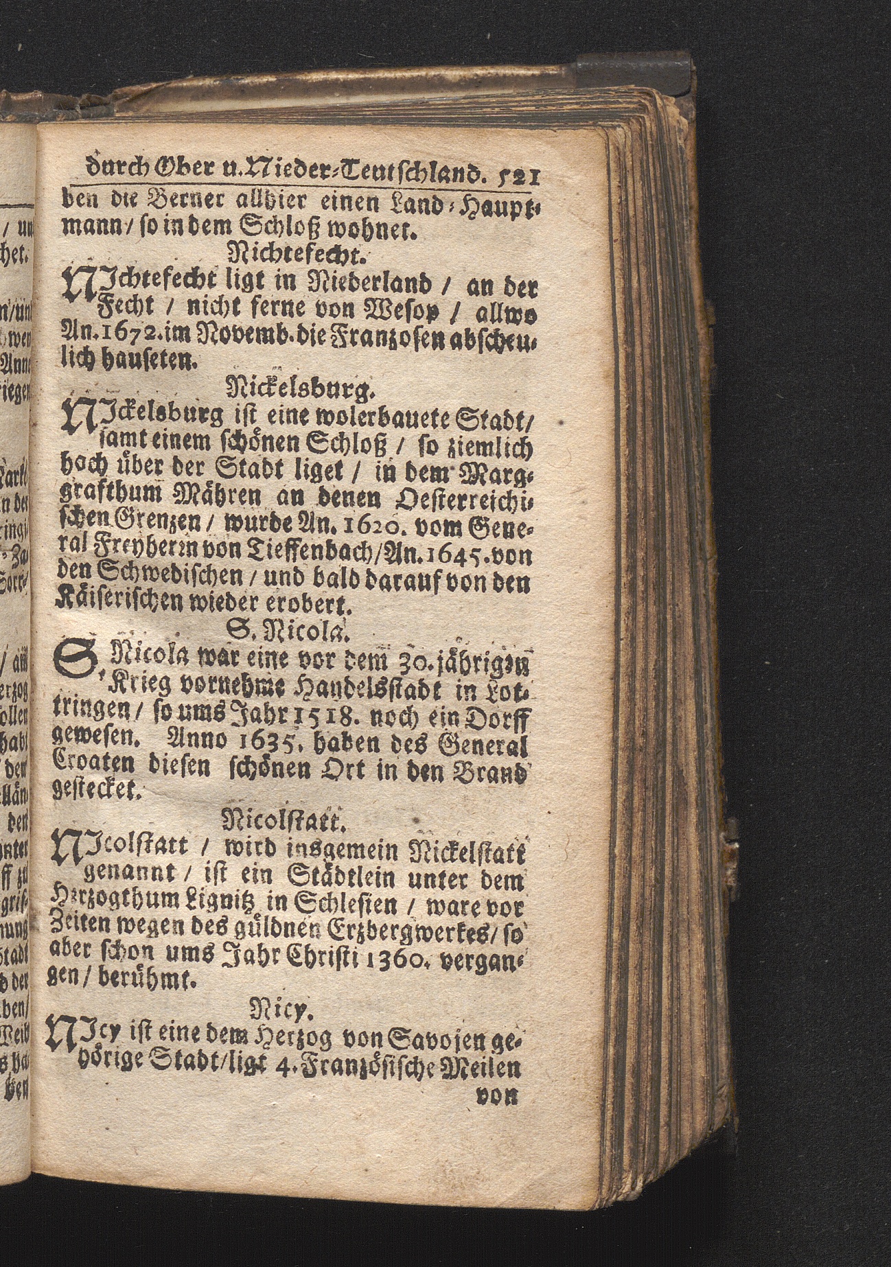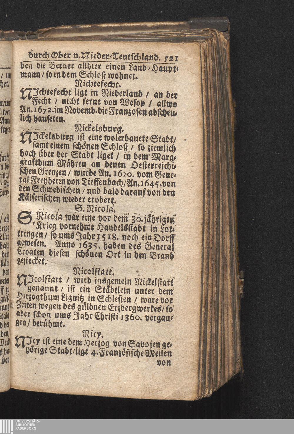 Der getreue Reiß-Gefert durch Ober- und Nieder-Teutschland : Das ist: Grundrichtige und ausführliche Abhandlung derer jenigen Residenzien/ Städte/ Schlösser/ Vestungen/ Städtlein und nahmhafften Markflecken/ welche so wol in Ober- als Nieder-Teutschland/ einem Reisenden sich hin und wieder vorstellig machen und zwar solcher Gestalt/ daß darinn derer Ursprung/ Aufnahm/ Fortification/ Raritäten/ herrliche Gebäue/ und Glück- und Unglücks-Fälle bis auf gegenwärtige Zeit fortgesetzt enthalten. Dabey auch noch über das ein absonderlicher kurz-gefasster Weegweiser angehänget zu finden/ worinnen klärlich zu sehen, wie viel Meilen ein Ort von dem andern entlegen. Alles aus denen bewährtesten Scribenten hervorgesuchet/ zum Nutz-Ergötzen mitgetheilet ...