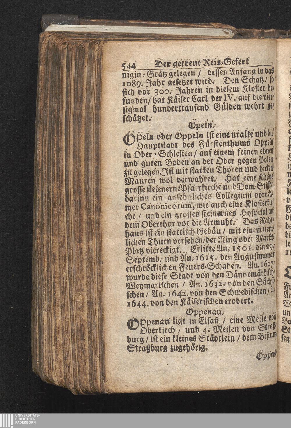 Der getreue Reiß-Gefert durch Ober- und Nieder-Teutschland : Das ist: Grundrichtige und ausführliche Abhandlung derer jenigen Residenzien/ Städte/ Schlösser/ Vestungen/ Städtlein und nahmhafften Markflecken/ welche so wol in Ober- als Nieder-Teutschland/ einem Reisenden sich hin und wieder vorstellig machen und zwar solcher Gestalt/ daß darinn derer Ursprung/ Aufnahm/ Fortification/ Raritäten/ herrliche Gebäue/ und Glück- und Unglücks-Fälle bis auf gegenwärtige Zeit fortgesetzt enthalten. Dabey auch noch über das ein absonderlicher kurz-gefasster Weegweiser angehänget zu finden/ worinnen klärlich zu sehen, wie viel Meilen ein Ort von dem andern entlegen. Alles aus denen bewährtesten Scribenten hervorgesuchet/ zum Nutz-Ergötzen mitgetheilet ...