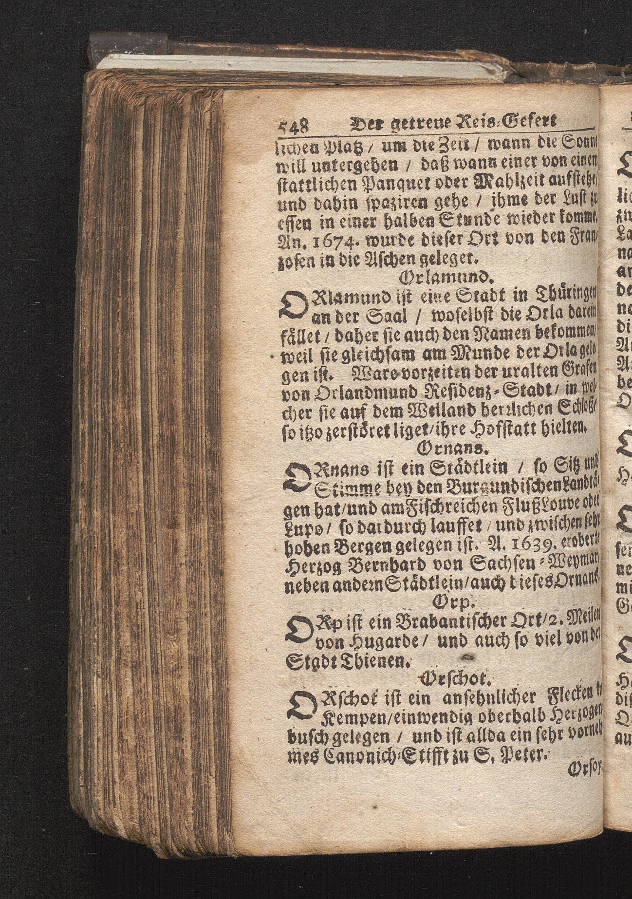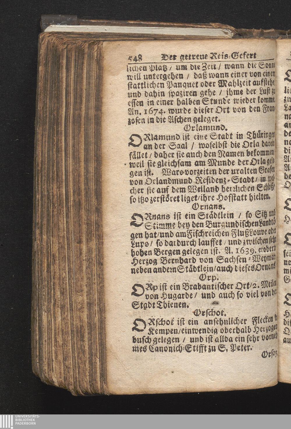 Der getreue Reiß-Gefert durch Ober- und Nieder-Teutschland : Das ist: Grundrichtige und ausführliche Abhandlung derer jenigen Residenzien/ Städte/ Schlösser/ Vestungen/ Städtlein und nahmhafften Markflecken/ welche so wol in Ober- als Nieder-Teutschland/ einem Reisenden sich hin und wieder vorstellig machen und zwar solcher Gestalt/ daß darinn derer Ursprung/ Aufnahm/ Fortification/ Raritäten/ herrliche Gebäue/ und Glück- und Unglücks-Fälle bis auf gegenwärtige Zeit fortgesetzt enthalten. Dabey auch noch über das ein absonderlicher kurz-gefasster Weegweiser angehänget zu finden/ worinnen klärlich zu sehen, wie viel Meilen ein Ort von dem andern entlegen. Alles aus denen bewährtesten Scribenten hervorgesuchet/ zum Nutz-Ergötzen mitgetheilet ...