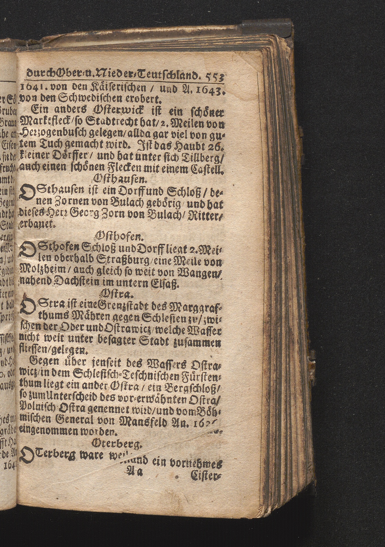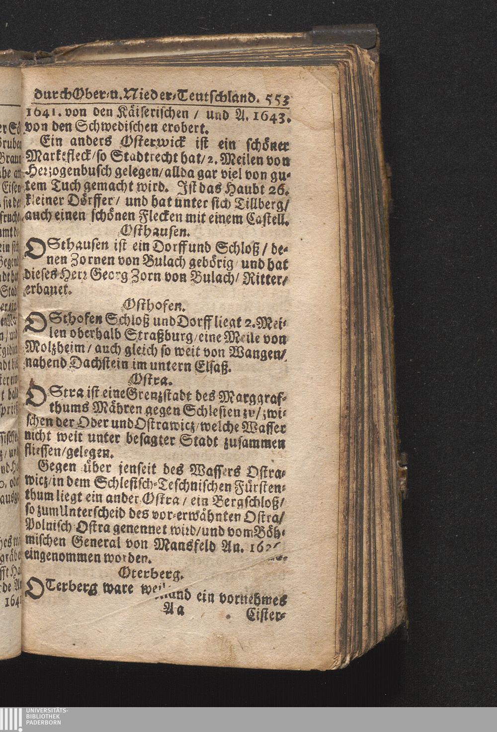 Der getreue Reiß-Gefert durch Ober- und Nieder-Teutschland : Das ist: Grundrichtige und ausführliche Abhandlung derer jenigen Residenzien/ Städte/ Schlösser/ Vestungen/ Städtlein und nahmhafften Markflecken/ welche so wol in Ober- als Nieder-Teutschland/ einem Reisenden sich hin und wieder vorstellig machen und zwar solcher Gestalt/ daß darinn derer Ursprung/ Aufnahm/ Fortification/ Raritäten/ herrliche Gebäue/ und Glück- und Unglücks-Fälle bis auf gegenwärtige Zeit fortgesetzt enthalten. Dabey auch noch über das ein absonderlicher kurz-gefasster Weegweiser angehänget zu finden/ worinnen klärlich zu sehen, wie viel Meilen ein Ort von dem andern entlegen. Alles aus denen bewährtesten Scribenten hervorgesuchet/ zum Nutz-Ergötzen mitgetheilet ...