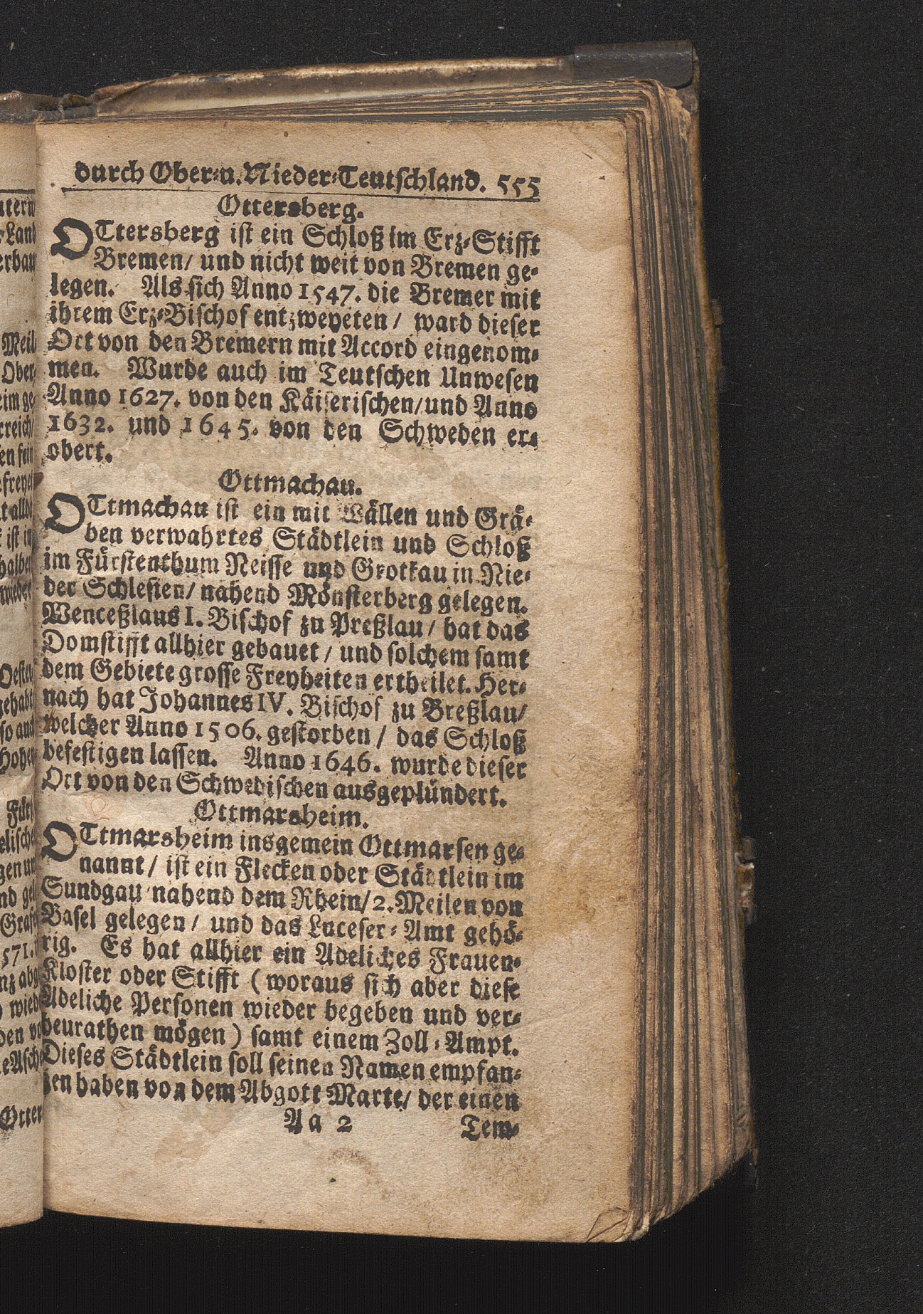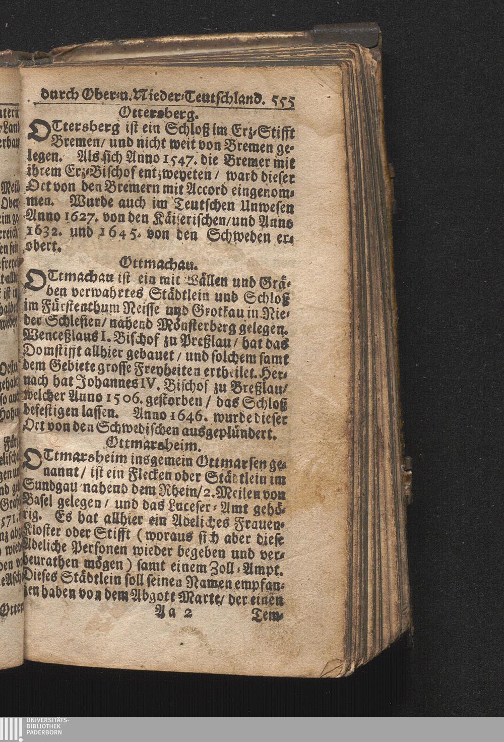 Der getreue Reiß-Gefert durch Ober- und Nieder-Teutschland : Das ist: Grundrichtige und ausführliche Abhandlung derer jenigen Residenzien/ Städte/ Schlösser/ Vestungen/ Städtlein und nahmhafften Markflecken/ welche so wol in Ober- als Nieder-Teutschland/ einem Reisenden sich hin und wieder vorstellig machen und zwar solcher Gestalt/ daß darinn derer Ursprung/ Aufnahm/ Fortification/ Raritäten/ herrliche Gebäue/ und Glück- und Unglücks-Fälle bis auf gegenwärtige Zeit fortgesetzt enthalten. Dabey auch noch über das ein absonderlicher kurz-gefasster Weegweiser angehänget zu finden/ worinnen klärlich zu sehen, wie viel Meilen ein Ort von dem andern entlegen. Alles aus denen bewährtesten Scribenten hervorgesuchet/ zum Nutz-Ergötzen mitgetheilet ...