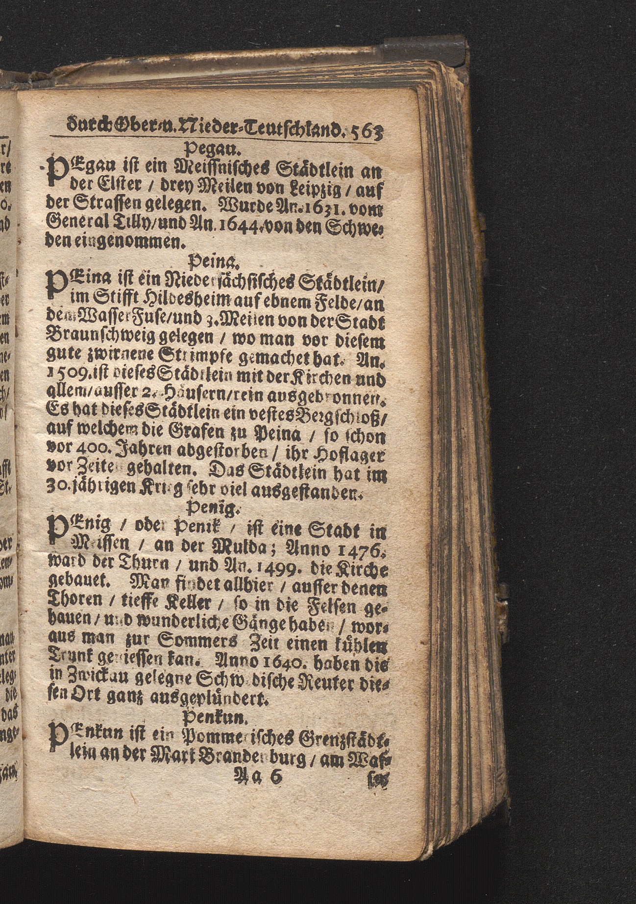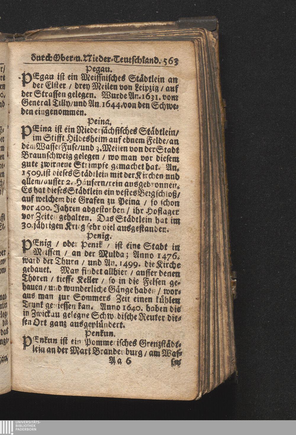 Der getreue Reiß-Gefert durch Ober- und Nieder-Teutschland : Das ist: Grundrichtige und ausführliche Abhandlung derer jenigen Residenzien/ Städte/ Schlösser/ Vestungen/ Städtlein und nahmhafften Markflecken/ welche so wol in Ober- als Nieder-Teutschland/ einem Reisenden sich hin und wieder vorstellig machen und zwar solcher Gestalt/ daß darinn derer Ursprung/ Aufnahm/ Fortification/ Raritäten/ herrliche Gebäue/ und Glück- und Unglücks-Fälle bis auf gegenwärtige Zeit fortgesetzt enthalten. Dabey auch noch über das ein absonderlicher kurz-gefasster Weegweiser angehänget zu finden/ worinnen klärlich zu sehen, wie viel Meilen ein Ort von dem andern entlegen. Alles aus denen bewährtesten Scribenten hervorgesuchet/ zum Nutz-Ergötzen mitgetheilet ...