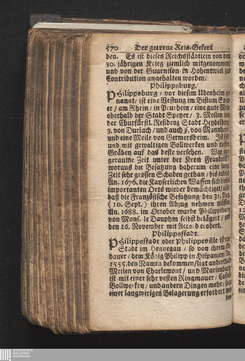 Der getreue Reiß-Gefert durch Ober- und Nieder-Teutschland : Das ist: Grundrichtige und ausführliche Abhandlung derer jenigen Residenzien/ Städte/ Schlösser/ Vestungen/ Städtlein und nahmhafften Markflecken/ welche so wol in Ober- als Nieder-Teutschland/ einem Reisenden sich hin und wieder vorstellig machen und zwar solcher Gestalt/ daß darinn derer Ursprung/ Aufnahm/ Fortification/ Raritäten/ herrliche Gebäue/ und Glück- und Unglücks-Fälle bis auf gegenwärtige Zeit fortgesetzt enthalten. Dabey auch noch über das ein absonderlicher kurz-gefasster Weegweiser angehänget zu finden/ worinnen klärlich zu sehen, wie viel Meilen ein Ort von dem andern entlegen. Alles aus denen bewährtesten Scribenten hervorgesuchet/ zum Nutz-Ergötzen mitgetheilet ...