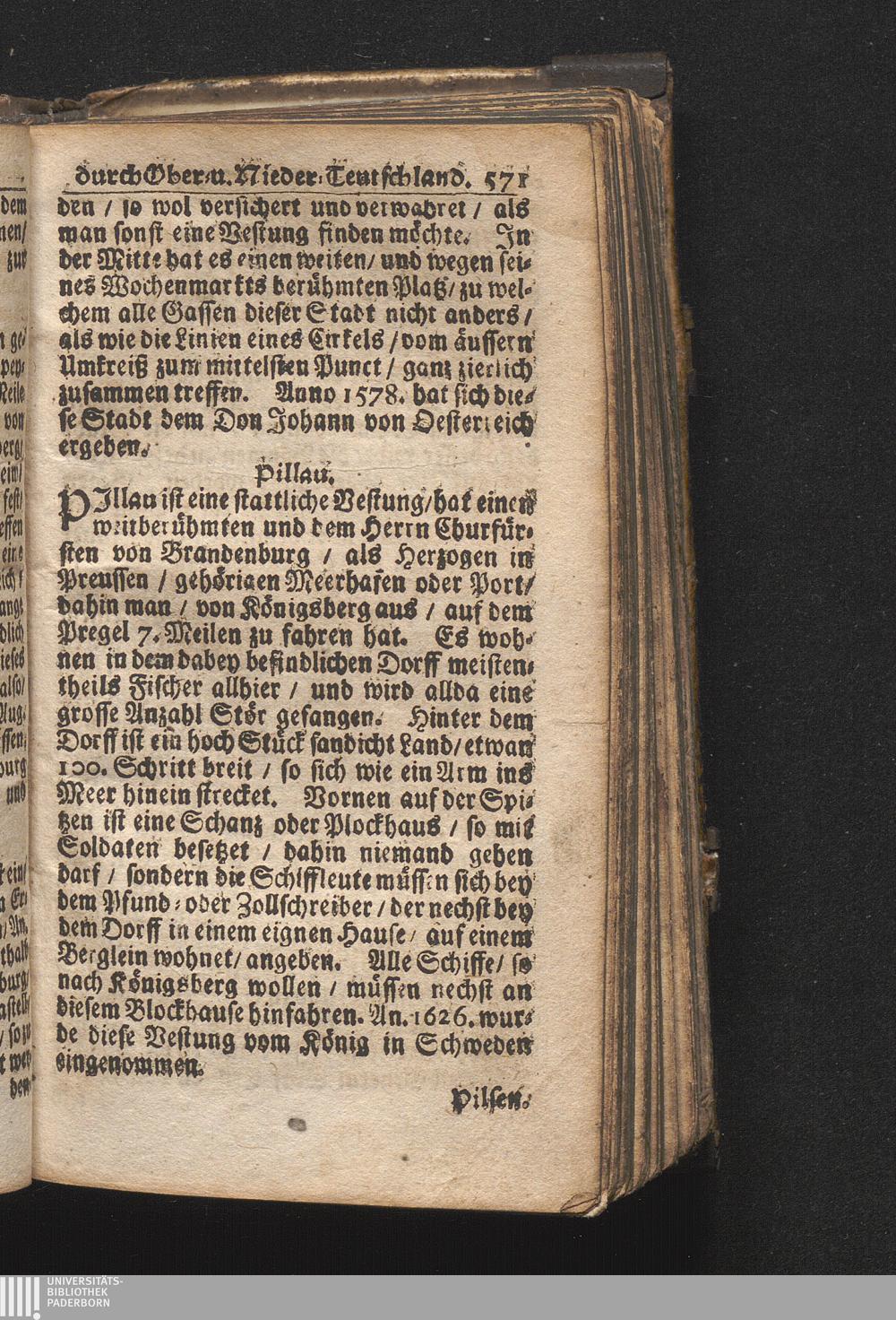 Der getreue Reiß-Gefert durch Ober- und Nieder-Teutschland : Das ist: Grundrichtige und ausführliche Abhandlung derer jenigen Residenzien/ Städte/ Schlösser/ Vestungen/ Städtlein und nahmhafften Markflecken/ welche so wol in Ober- als Nieder-Teutschland/ einem Reisenden sich hin und wieder vorstellig machen und zwar solcher Gestalt/ daß darinn derer Ursprung/ Aufnahm/ Fortification/ Raritäten/ herrliche Gebäue/ und Glück- und Unglücks-Fälle bis auf gegenwärtige Zeit fortgesetzt enthalten. Dabey auch noch über das ein absonderlicher kurz-gefasster Weegweiser angehänget zu finden/ worinnen klärlich zu sehen, wie viel Meilen ein Ort von dem andern entlegen. Alles aus denen bewährtesten Scribenten hervorgesuchet/ zum Nutz-Ergötzen mitgetheilet ...