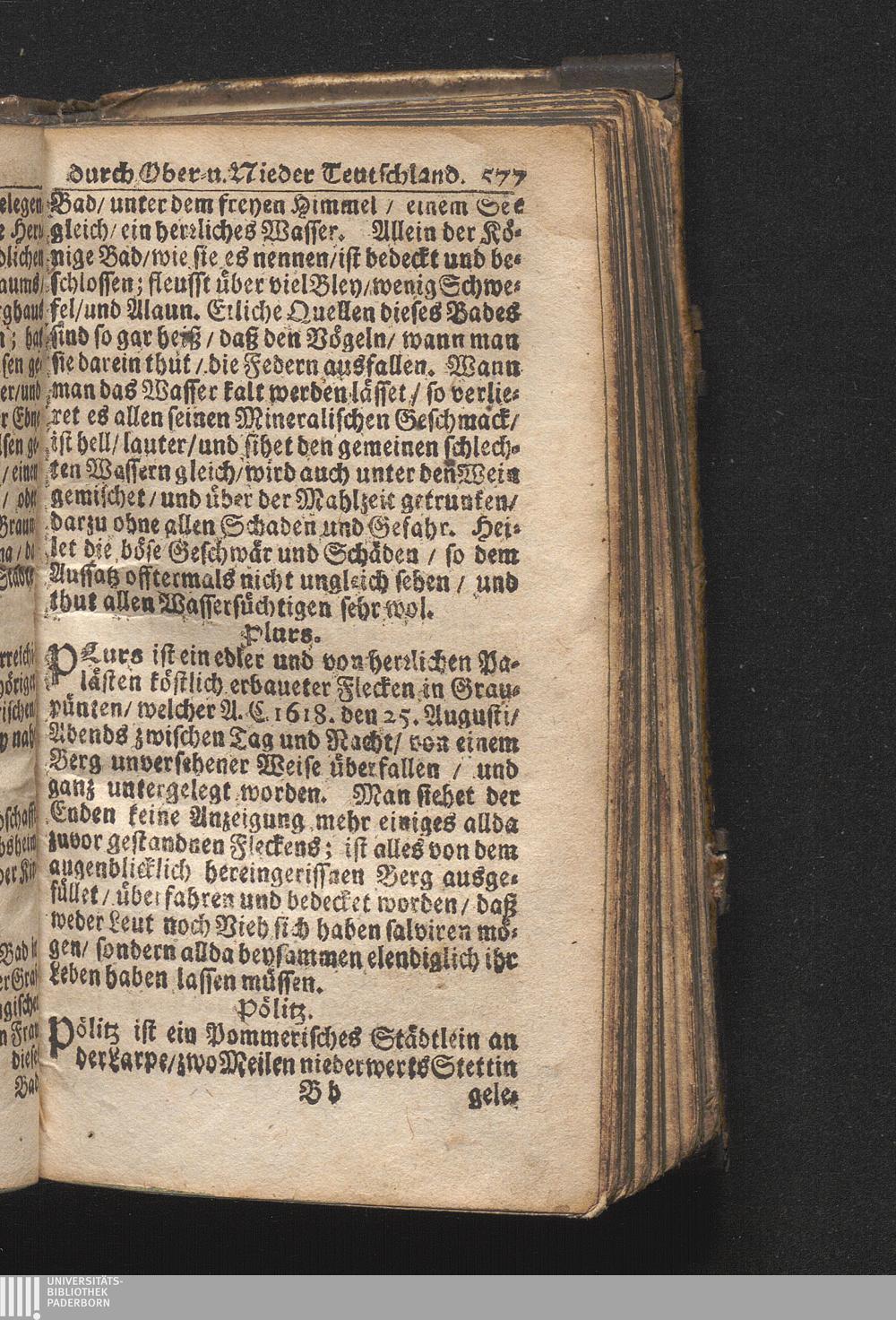 Der getreue Reiß-Gefert durch Ober- und Nieder-Teutschland : Das ist: Grundrichtige und ausführliche Abhandlung derer jenigen Residenzien/ Städte/ Schlösser/ Vestungen/ Städtlein und nahmhafften Markflecken/ welche so wol in Ober- als Nieder-Teutschland/ einem Reisenden sich hin und wieder vorstellig machen und zwar solcher Gestalt/ daß darinn derer Ursprung/ Aufnahm/ Fortification/ Raritäten/ herrliche Gebäue/ und Glück- und Unglücks-Fälle bis auf gegenwärtige Zeit fortgesetzt enthalten. Dabey auch noch über das ein absonderlicher kurz-gefasster Weegweiser angehänget zu finden/ worinnen klärlich zu sehen, wie viel Meilen ein Ort von dem andern entlegen. Alles aus denen bewährtesten Scribenten hervorgesuchet/ zum Nutz-Ergötzen mitgetheilet ...