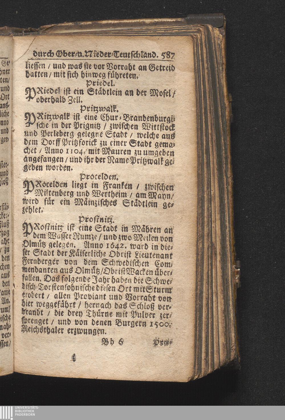 Der getreue Reiß-Gefert durch Ober- und Nieder-Teutschland : Das ist: Grundrichtige und ausführliche Abhandlung derer jenigen Residenzien/ Städte/ Schlösser/ Vestungen/ Städtlein und nahmhafften Markflecken/ welche so wol in Ober- als Nieder-Teutschland/ einem Reisenden sich hin und wieder vorstellig machen und zwar solcher Gestalt/ daß darinn derer Ursprung/ Aufnahm/ Fortification/ Raritäten/ herrliche Gebäue/ und Glück- und Unglücks-Fälle bis auf gegenwärtige Zeit fortgesetzt enthalten. Dabey auch noch über das ein absonderlicher kurz-gefasster Weegweiser angehänget zu finden/ worinnen klärlich zu sehen, wie viel Meilen ein Ort von dem andern entlegen. Alles aus denen bewährtesten Scribenten hervorgesuchet/ zum Nutz-Ergötzen mitgetheilet ...