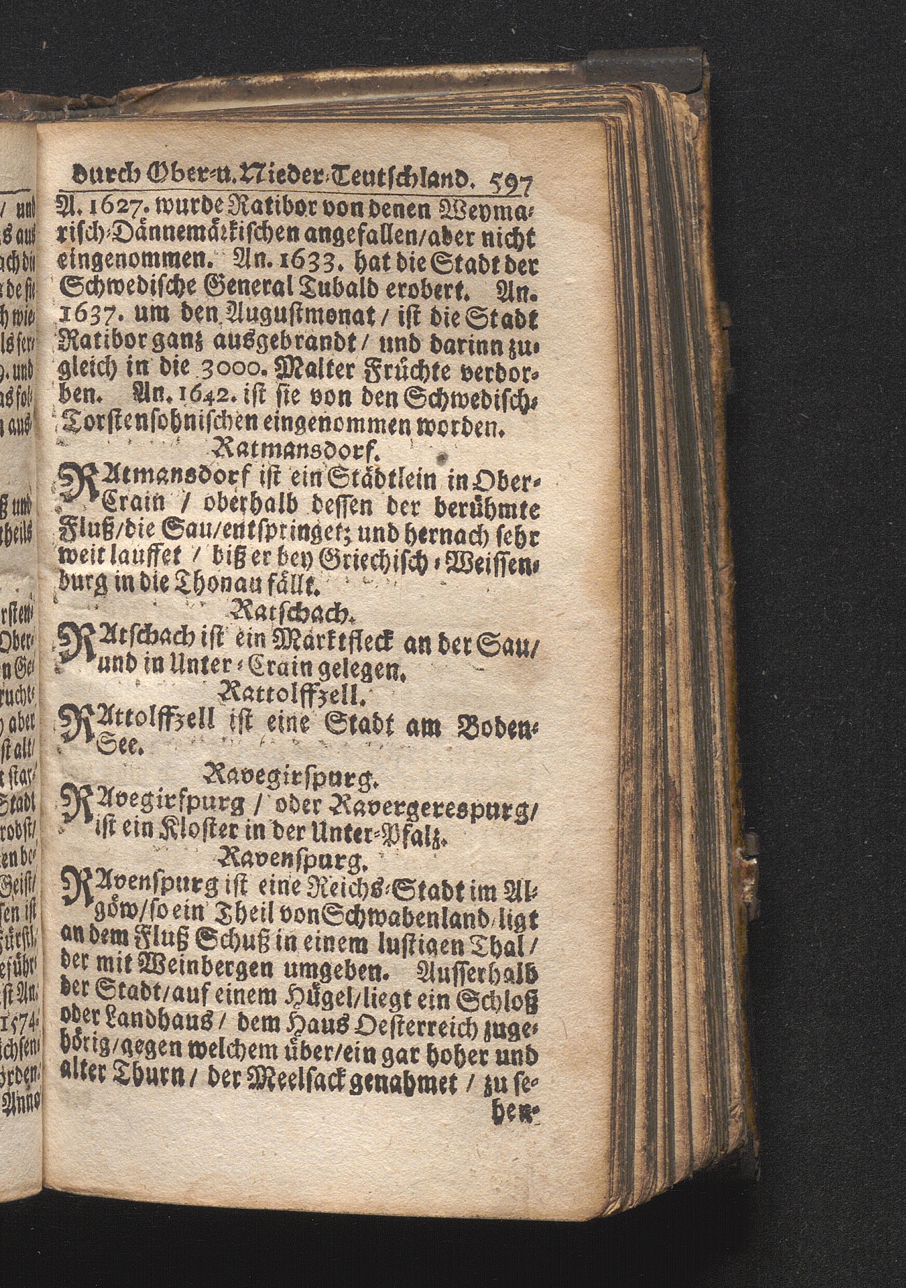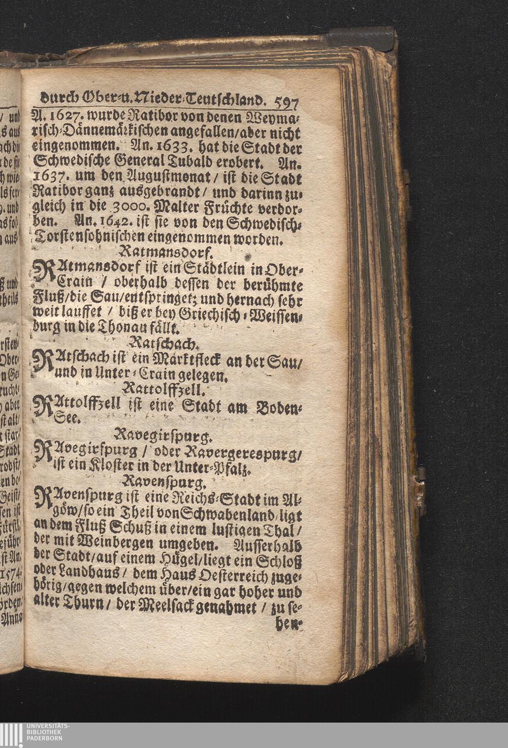 Der getreue Reiß-Gefert durch Ober- und Nieder-Teutschland : Das ist: Grundrichtige und ausführliche Abhandlung derer jenigen Residenzien/ Städte/ Schlösser/ Vestungen/ Städtlein und nahmhafften Markflecken/ welche so wol in Ober- als Nieder-Teutschland/ einem Reisenden sich hin und wieder vorstellig machen und zwar solcher Gestalt/ daß darinn derer Ursprung/ Aufnahm/ Fortification/ Raritäten/ herrliche Gebäue/ und Glück- und Unglücks-Fälle bis auf gegenwärtige Zeit fortgesetzt enthalten. Dabey auch noch über das ein absonderlicher kurz-gefasster Weegweiser angehänget zu finden/ worinnen klärlich zu sehen, wie viel Meilen ein Ort von dem andern entlegen. Alles aus denen bewährtesten Scribenten hervorgesuchet/ zum Nutz-Ergötzen mitgetheilet ...