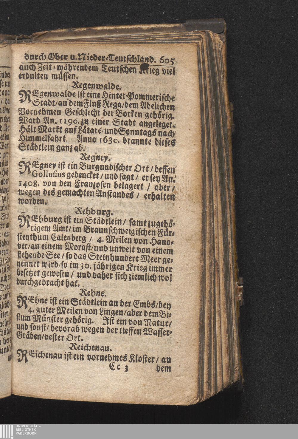 Der getreue Reiß-Gefert durch Ober- und Nieder-Teutschland : Das ist: Grundrichtige und ausführliche Abhandlung derer jenigen Residenzien/ Städte/ Schlösser/ Vestungen/ Städtlein und nahmhafften Markflecken/ welche so wol in Ober- als Nieder-Teutschland/ einem Reisenden sich hin und wieder vorstellig machen und zwar solcher Gestalt/ daß darinn derer Ursprung/ Aufnahm/ Fortification/ Raritäten/ herrliche Gebäue/ und Glück- und Unglücks-Fälle bis auf gegenwärtige Zeit fortgesetzt enthalten. Dabey auch noch über das ein absonderlicher kurz-gefasster Weegweiser angehänget zu finden/ worinnen klärlich zu sehen, wie viel Meilen ein Ort von dem andern entlegen. Alles aus denen bewährtesten Scribenten hervorgesuchet/ zum Nutz-Ergötzen mitgetheilet ...