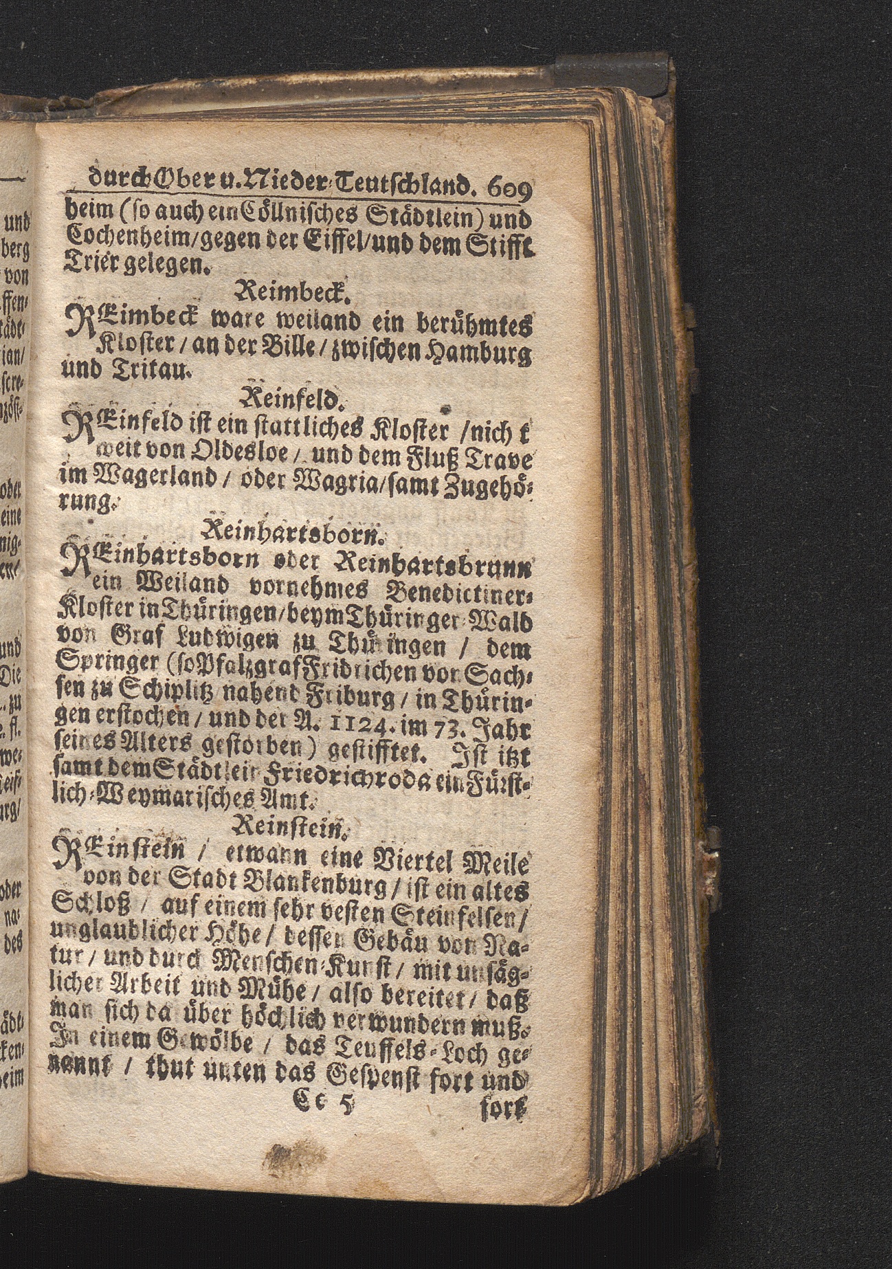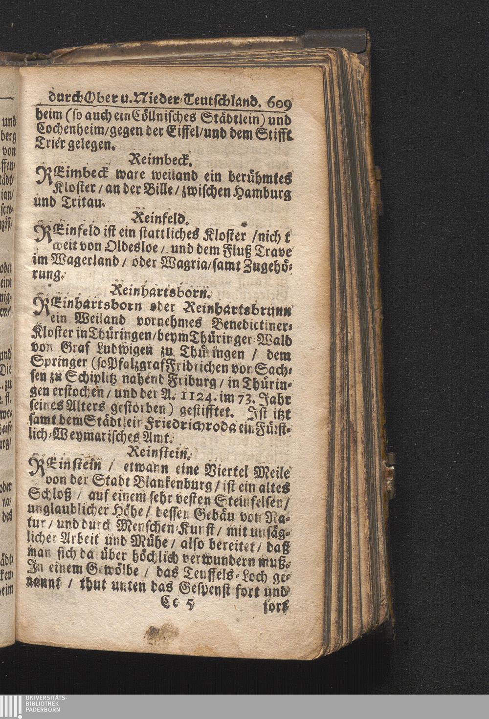 Der getreue Reiß-Gefert durch Ober- und Nieder-Teutschland : Das ist: Grundrichtige und ausführliche Abhandlung derer jenigen Residenzien/ Städte/ Schlösser/ Vestungen/ Städtlein und nahmhafften Markflecken/ welche so wol in Ober- als Nieder-Teutschland/ einem Reisenden sich hin und wieder vorstellig machen und zwar solcher Gestalt/ daß darinn derer Ursprung/ Aufnahm/ Fortification/ Raritäten/ herrliche Gebäue/ und Glück- und Unglücks-Fälle bis auf gegenwärtige Zeit fortgesetzt enthalten. Dabey auch noch über das ein absonderlicher kurz-gefasster Weegweiser angehänget zu finden/ worinnen klärlich zu sehen, wie viel Meilen ein Ort von dem andern entlegen. Alles aus denen bewährtesten Scribenten hervorgesuchet/ zum Nutz-Ergötzen mitgetheilet ...