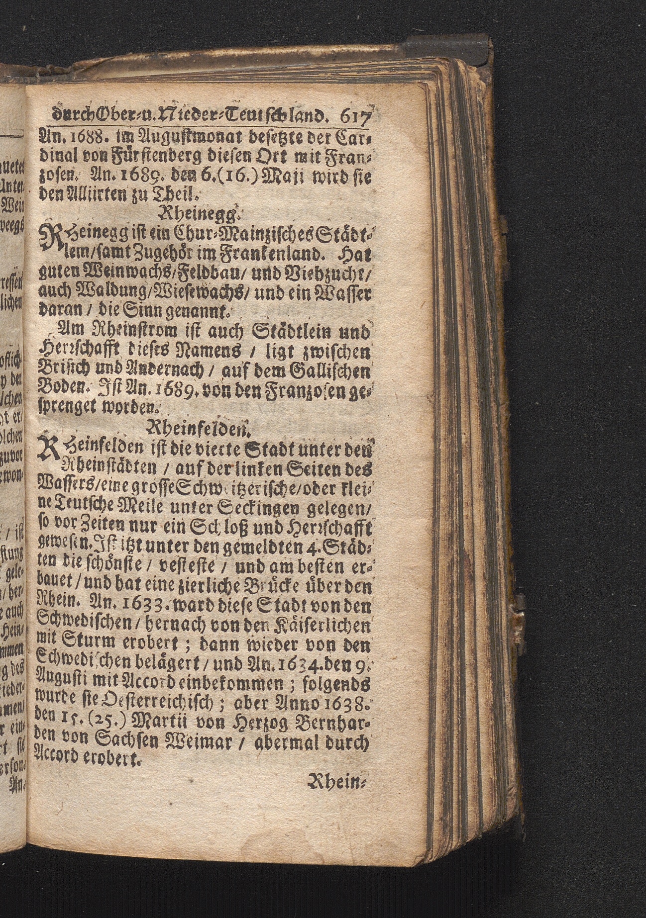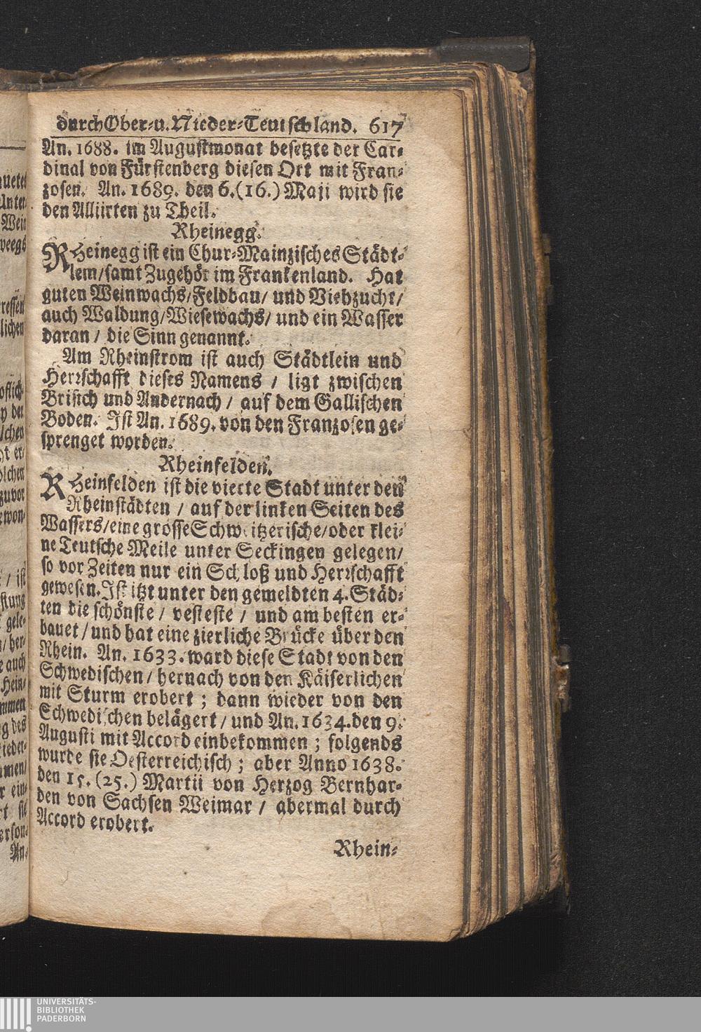 Der getreue Reiß-Gefert durch Ober- und Nieder-Teutschland : Das ist: Grundrichtige und ausführliche Abhandlung derer jenigen Residenzien/ Städte/ Schlösser/ Vestungen/ Städtlein und nahmhafften Markflecken/ welche so wol in Ober- als Nieder-Teutschland/ einem Reisenden sich hin und wieder vorstellig machen und zwar solcher Gestalt/ daß darinn derer Ursprung/ Aufnahm/ Fortification/ Raritäten/ herrliche Gebäue/ und Glück- und Unglücks-Fälle bis auf gegenwärtige Zeit fortgesetzt enthalten. Dabey auch noch über das ein absonderlicher kurz-gefasster Weegweiser angehänget zu finden/ worinnen klärlich zu sehen, wie viel Meilen ein Ort von dem andern entlegen. Alles aus denen bewährtesten Scribenten hervorgesuchet/ zum Nutz-Ergötzen mitgetheilet ...