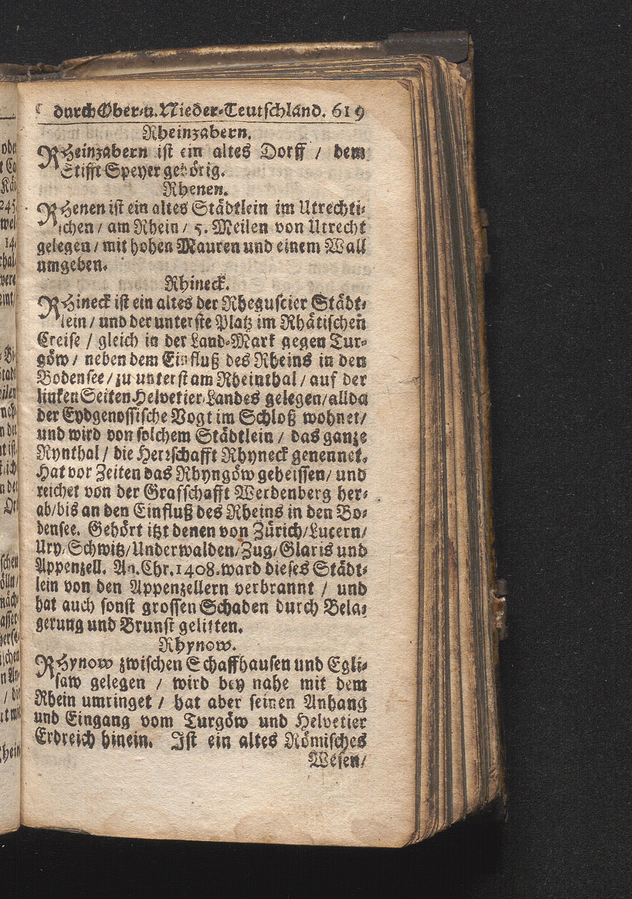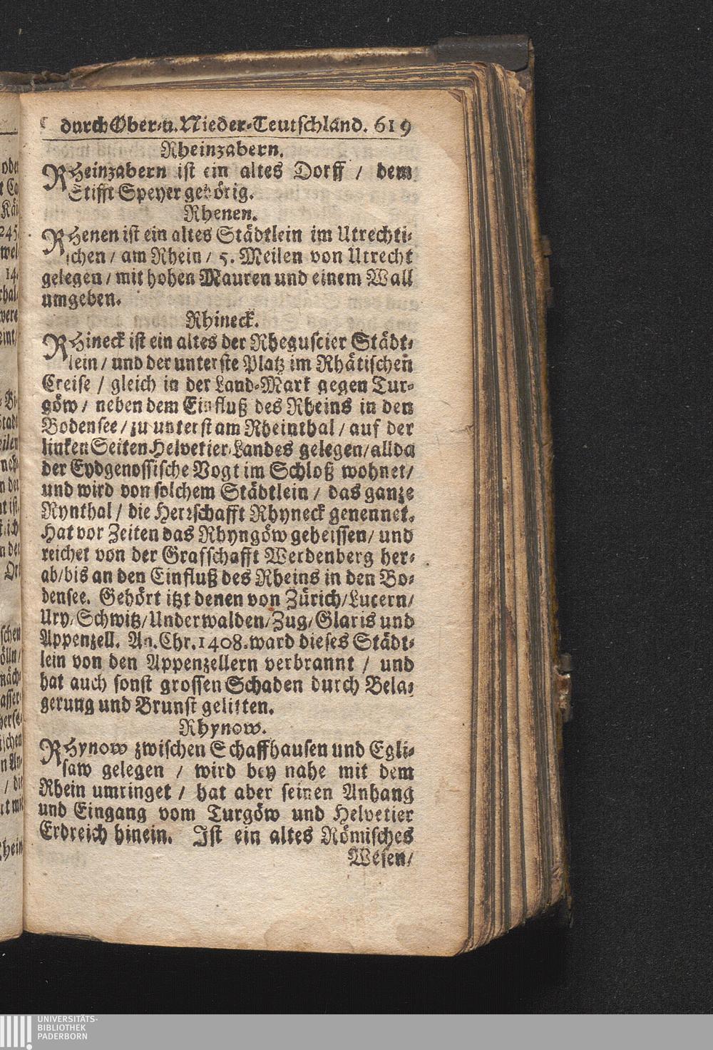 Der getreue Reiß-Gefert durch Ober- und Nieder-Teutschland : Das ist: Grundrichtige und ausführliche Abhandlung derer jenigen Residenzien/ Städte/ Schlösser/ Vestungen/ Städtlein und nahmhafften Markflecken/ welche so wol in Ober- als Nieder-Teutschland/ einem Reisenden sich hin und wieder vorstellig machen und zwar solcher Gestalt/ daß darinn derer Ursprung/ Aufnahm/ Fortification/ Raritäten/ herrliche Gebäue/ und Glück- und Unglücks-Fälle bis auf gegenwärtige Zeit fortgesetzt enthalten. Dabey auch noch über das ein absonderlicher kurz-gefasster Weegweiser angehänget zu finden/ worinnen klärlich zu sehen, wie viel Meilen ein Ort von dem andern entlegen. Alles aus denen bewährtesten Scribenten hervorgesuchet/ zum Nutz-Ergötzen mitgetheilet ...
