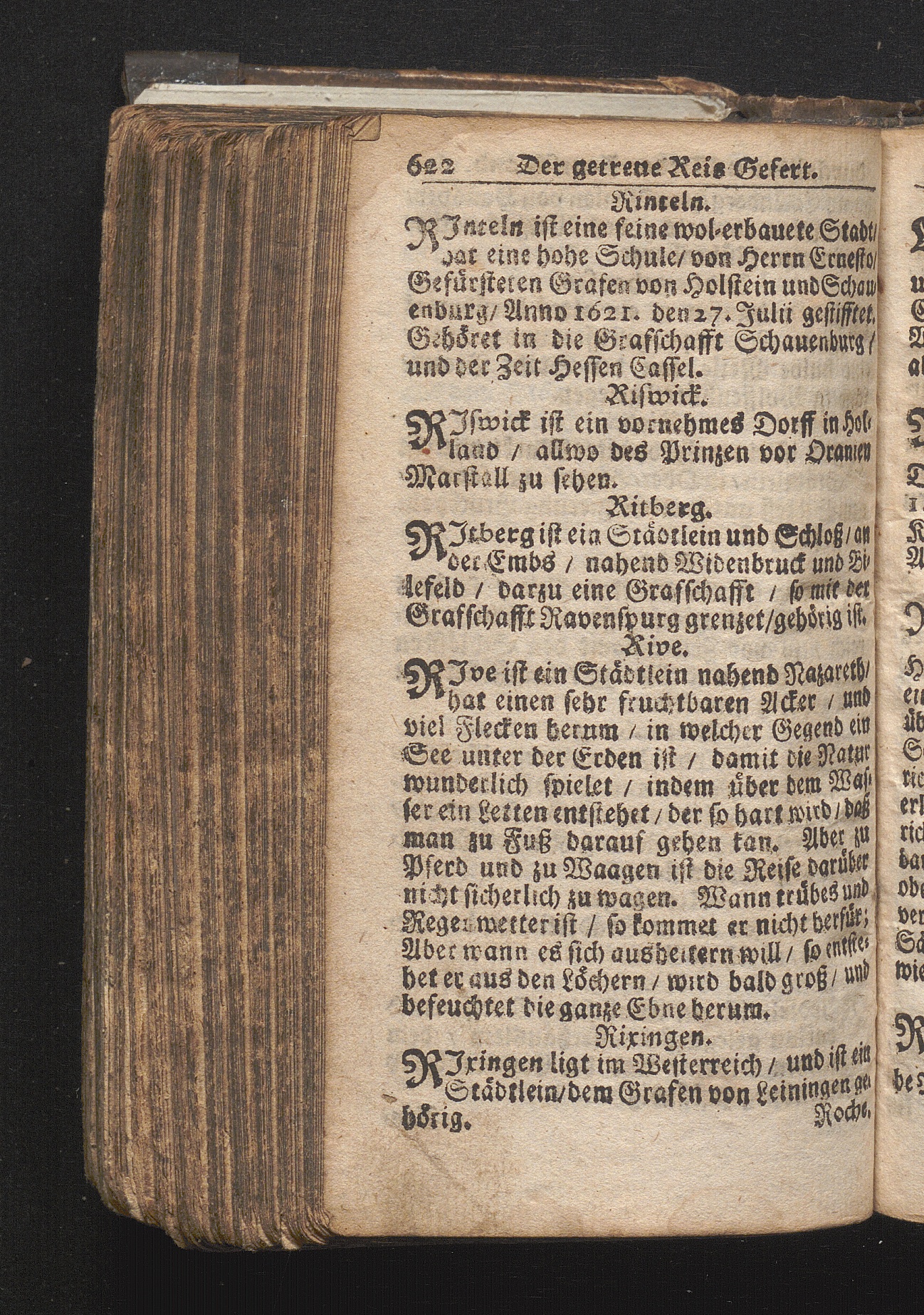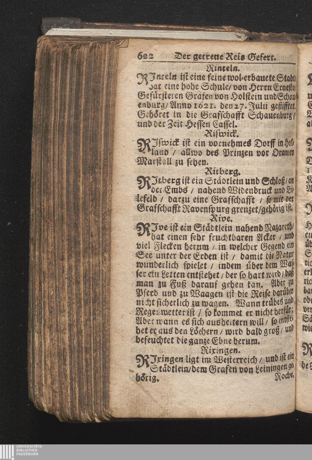 Der getreue Reiß-Gefert durch Ober- und Nieder-Teutschland : Das ist: Grundrichtige und ausführliche Abhandlung derer jenigen Residenzien/ Städte/ Schlösser/ Vestungen/ Städtlein und nahmhafften Markflecken/ welche so wol in Ober- als Nieder-Teutschland/ einem Reisenden sich hin und wieder vorstellig machen und zwar solcher Gestalt/ daß darinn derer Ursprung/ Aufnahm/ Fortification/ Raritäten/ herrliche Gebäue/ und Glück- und Unglücks-Fälle bis auf gegenwärtige Zeit fortgesetzt enthalten. Dabey auch noch über das ein absonderlicher kurz-gefasster Weegweiser angehänget zu finden/ worinnen klärlich zu sehen, wie viel Meilen ein Ort von dem andern entlegen. Alles aus denen bewährtesten Scribenten hervorgesuchet/ zum Nutz-Ergötzen mitgetheilet ...