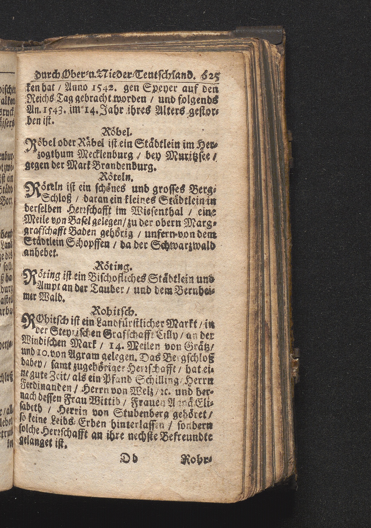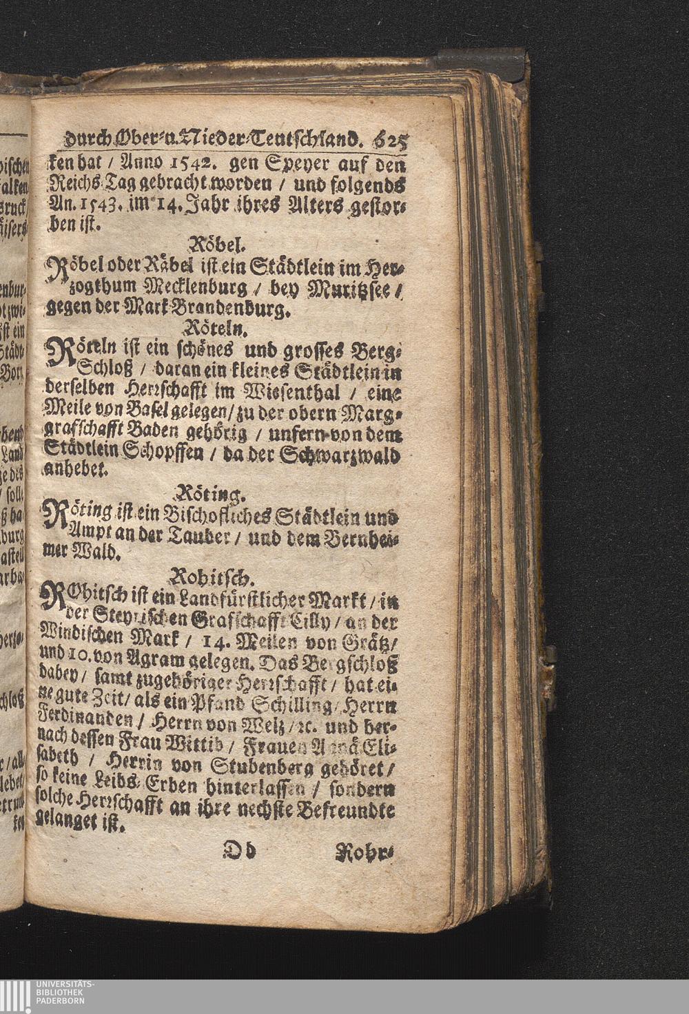 Der getreue Reiß-Gefert durch Ober- und Nieder-Teutschland : Das ist: Grundrichtige und ausführliche Abhandlung derer jenigen Residenzien/ Städte/ Schlösser/ Vestungen/ Städtlein und nahmhafften Markflecken/ welche so wol in Ober- als Nieder-Teutschland/ einem Reisenden sich hin und wieder vorstellig machen und zwar solcher Gestalt/ daß darinn derer Ursprung/ Aufnahm/ Fortification/ Raritäten/ herrliche Gebäue/ und Glück- und Unglücks-Fälle bis auf gegenwärtige Zeit fortgesetzt enthalten. Dabey auch noch über das ein absonderlicher kurz-gefasster Weegweiser angehänget zu finden/ worinnen klärlich zu sehen, wie viel Meilen ein Ort von dem andern entlegen. Alles aus denen bewährtesten Scribenten hervorgesuchet/ zum Nutz-Ergötzen mitgetheilet ...