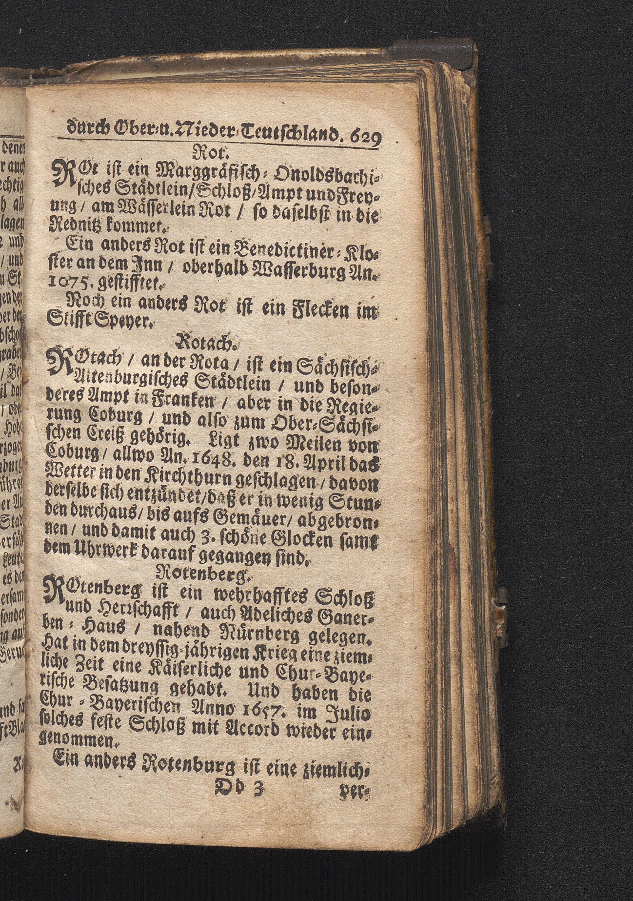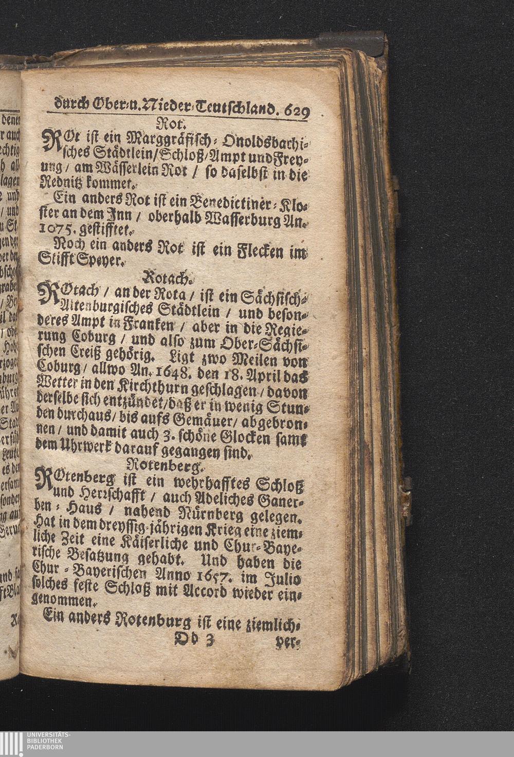Der getreue Reiß-Gefert durch Ober- und Nieder-Teutschland : Das ist: Grundrichtige und ausführliche Abhandlung derer jenigen Residenzien/ Städte/ Schlösser/ Vestungen/ Städtlein und nahmhafften Markflecken/ welche so wol in Ober- als Nieder-Teutschland/ einem Reisenden sich hin und wieder vorstellig machen und zwar solcher Gestalt/ daß darinn derer Ursprung/ Aufnahm/ Fortification/ Raritäten/ herrliche Gebäue/ und Glück- und Unglücks-Fälle bis auf gegenwärtige Zeit fortgesetzt enthalten. Dabey auch noch über das ein absonderlicher kurz-gefasster Weegweiser angehänget zu finden/ worinnen klärlich zu sehen, wie viel Meilen ein Ort von dem andern entlegen. Alles aus denen bewährtesten Scribenten hervorgesuchet/ zum Nutz-Ergötzen mitgetheilet ...
