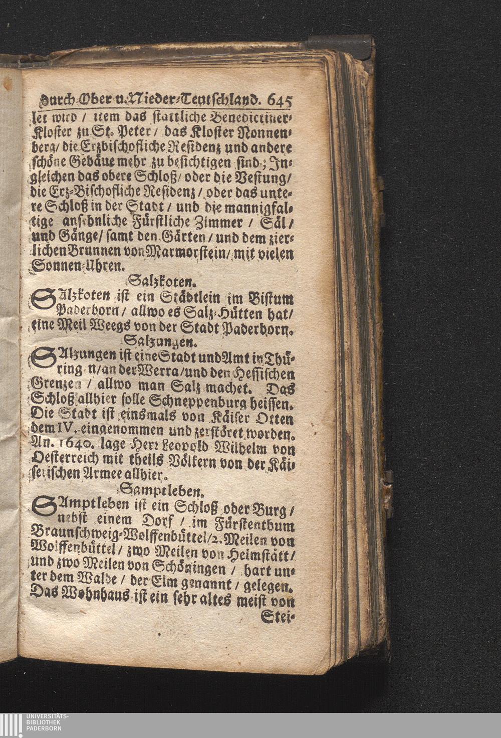 Der getreue Reiß-Gefert durch Ober- und Nieder-Teutschland : Das ist: Grundrichtige und ausführliche Abhandlung derer jenigen Residenzien/ Städte/ Schlösser/ Vestungen/ Städtlein und nahmhafften Markflecken/ welche so wol in Ober- als Nieder-Teutschland/ einem Reisenden sich hin und wieder vorstellig machen und zwar solcher Gestalt/ daß darinn derer Ursprung/ Aufnahm/ Fortification/ Raritäten/ herrliche Gebäue/ und Glück- und Unglücks-Fälle bis auf gegenwärtige Zeit fortgesetzt enthalten. Dabey auch noch über das ein absonderlicher kurz-gefasster Weegweiser angehänget zu finden/ worinnen klärlich zu sehen, wie viel Meilen ein Ort von dem andern entlegen. Alles aus denen bewährtesten Scribenten hervorgesuchet/ zum Nutz-Ergötzen mitgetheilet ...