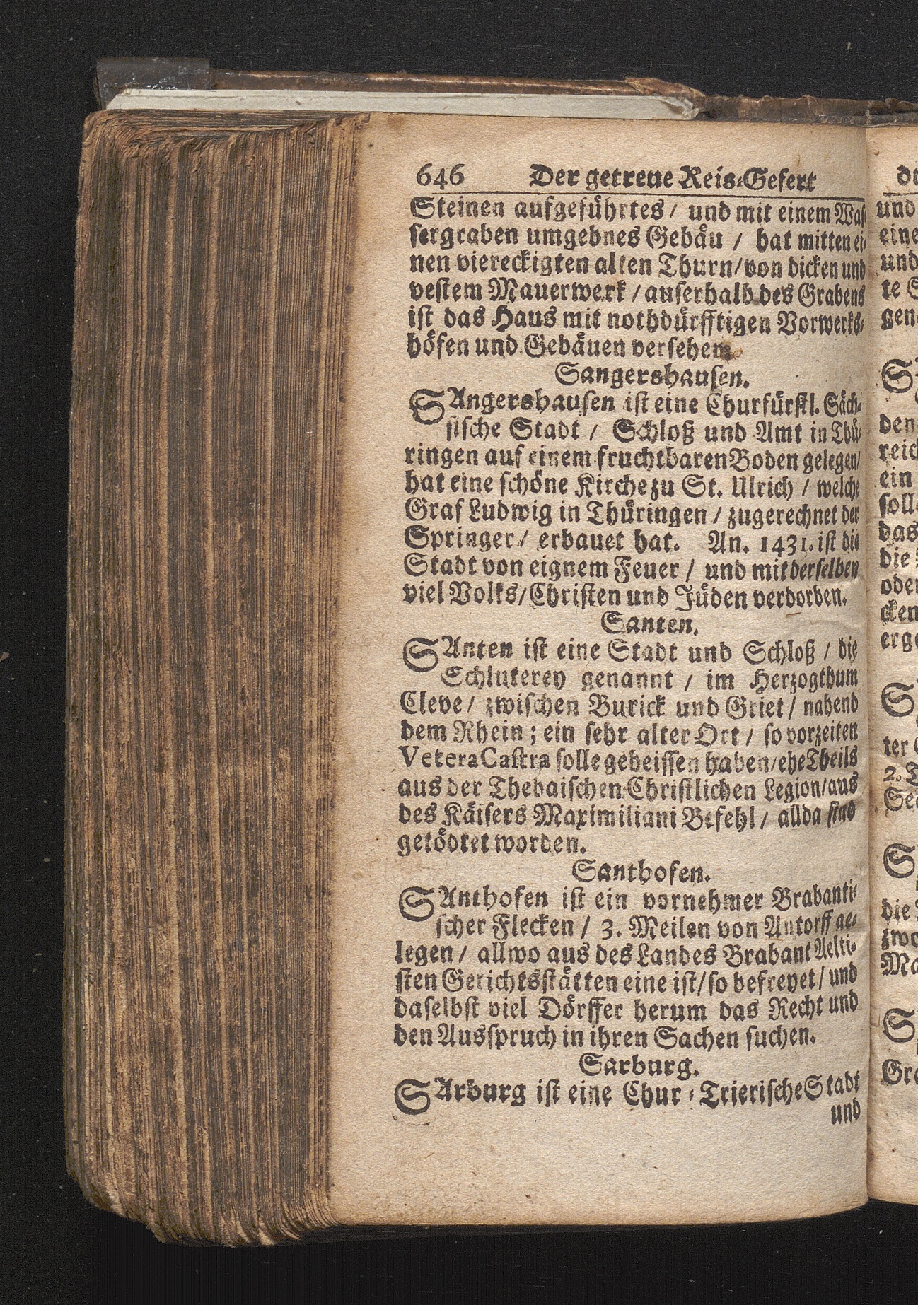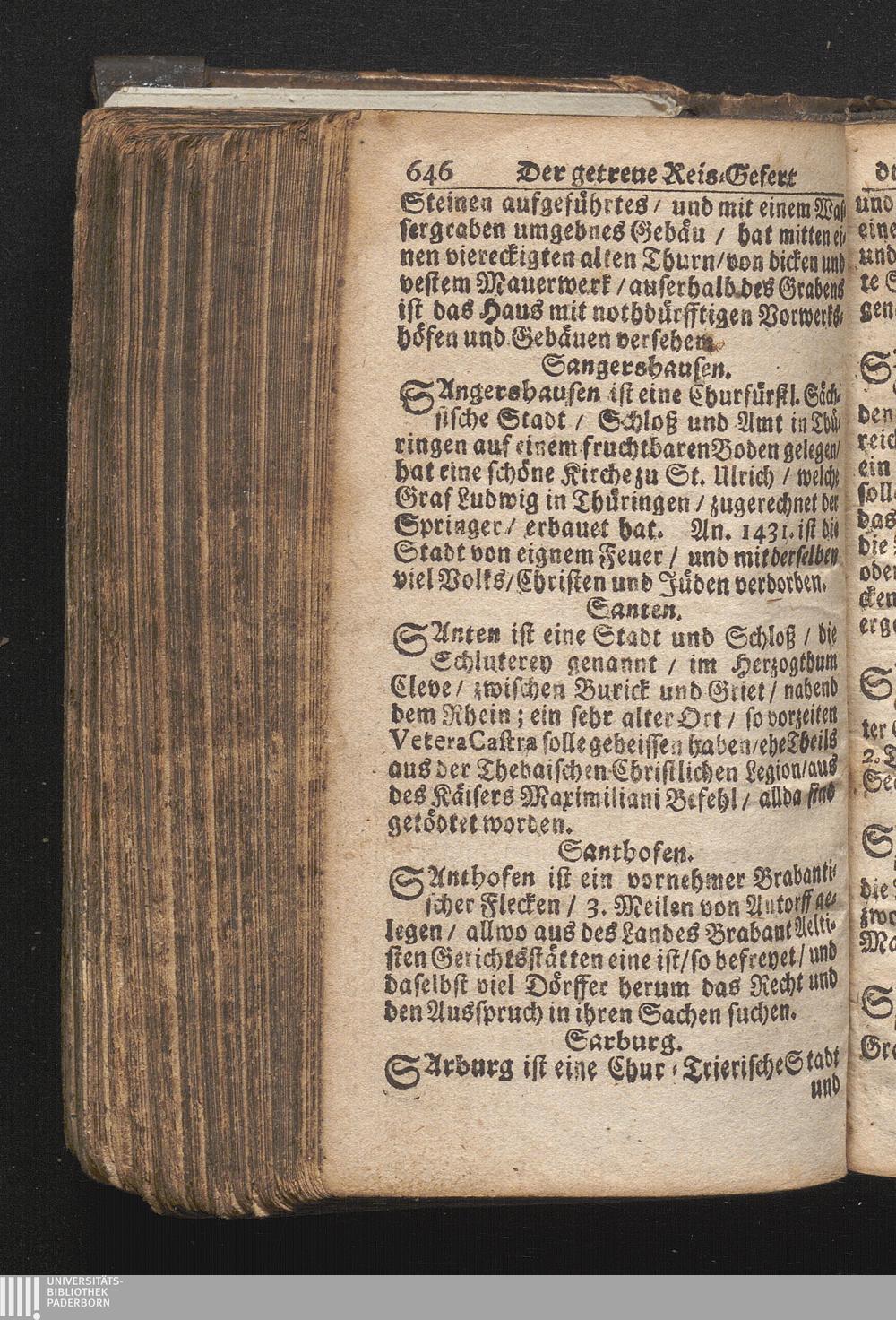 Der getreue Reiß-Gefert durch Ober- und Nieder-Teutschland : Das ist: Grundrichtige und ausführliche Abhandlung derer jenigen Residenzien/ Städte/ Schlösser/ Vestungen/ Städtlein und nahmhafften Markflecken/ welche so wol in Ober- als Nieder-Teutschland/ einem Reisenden sich hin und wieder vorstellig machen und zwar solcher Gestalt/ daß darinn derer Ursprung/ Aufnahm/ Fortification/ Raritäten/ herrliche Gebäue/ und Glück- und Unglücks-Fälle bis auf gegenwärtige Zeit fortgesetzt enthalten. Dabey auch noch über das ein absonderlicher kurz-gefasster Weegweiser angehänget zu finden/ worinnen klärlich zu sehen, wie viel Meilen ein Ort von dem andern entlegen. Alles aus denen bewährtesten Scribenten hervorgesuchet/ zum Nutz-Ergötzen mitgetheilet ...
