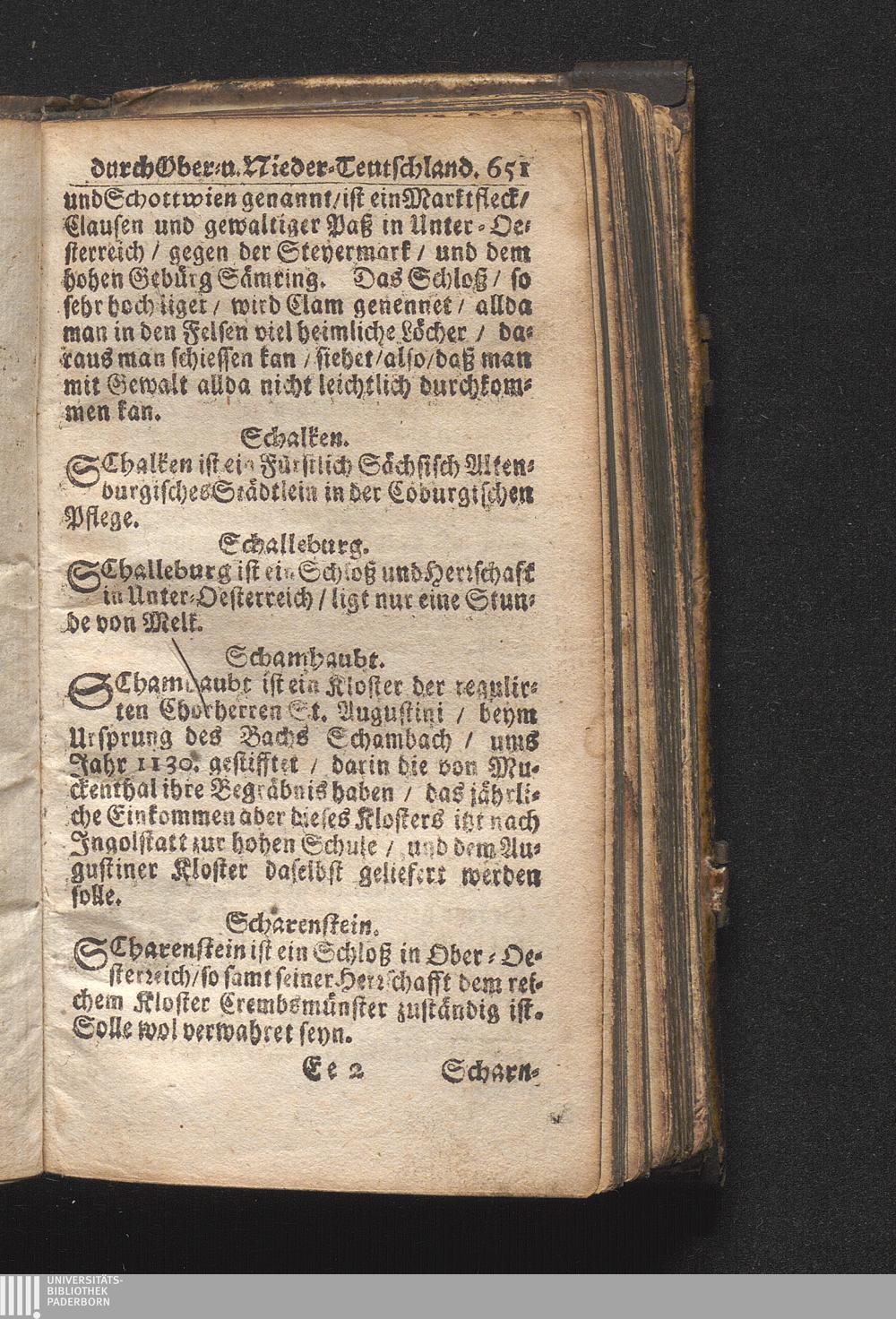 Der getreue Reiß-Gefert durch Ober- und Nieder-Teutschland : Das ist: Grundrichtige und ausführliche Abhandlung derer jenigen Residenzien/ Städte/ Schlösser/ Vestungen/ Städtlein und nahmhafften Markflecken/ welche so wol in Ober- als Nieder-Teutschland/ einem Reisenden sich hin und wieder vorstellig machen und zwar solcher Gestalt/ daß darinn derer Ursprung/ Aufnahm/ Fortification/ Raritäten/ herrliche Gebäue/ und Glück- und Unglücks-Fälle bis auf gegenwärtige Zeit fortgesetzt enthalten. Dabey auch noch über das ein absonderlicher kurz-gefasster Weegweiser angehänget zu finden/ worinnen klärlich zu sehen, wie viel Meilen ein Ort von dem andern entlegen. Alles aus denen bewährtesten Scribenten hervorgesuchet/ zum Nutz-Ergötzen mitgetheilet ...