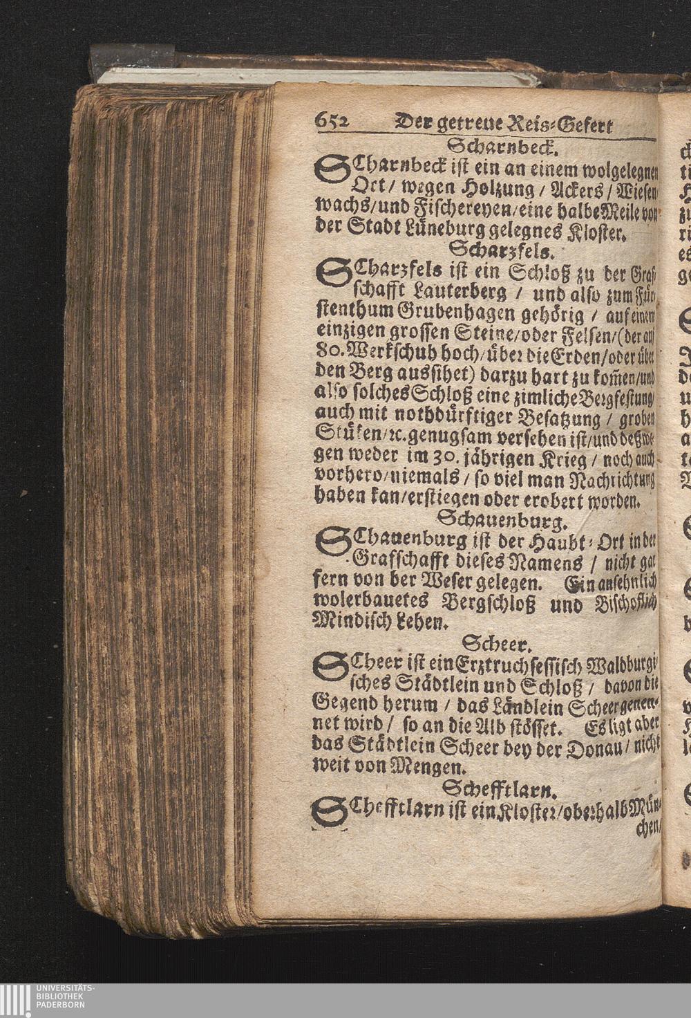 Der getreue Reiß-Gefert durch Ober- und Nieder-Teutschland : Das ist: Grundrichtige und ausführliche Abhandlung derer jenigen Residenzien/ Städte/ Schlösser/ Vestungen/ Städtlein und nahmhafften Markflecken/ welche so wol in Ober- als Nieder-Teutschland/ einem Reisenden sich hin und wieder vorstellig machen und zwar solcher Gestalt/ daß darinn derer Ursprung/ Aufnahm/ Fortification/ Raritäten/ herrliche Gebäue/ und Glück- und Unglücks-Fälle bis auf gegenwärtige Zeit fortgesetzt enthalten. Dabey auch noch über das ein absonderlicher kurz-gefasster Weegweiser angehänget zu finden/ worinnen klärlich zu sehen, wie viel Meilen ein Ort von dem andern entlegen. Alles aus denen bewährtesten Scribenten hervorgesuchet/ zum Nutz-Ergötzen mitgetheilet ...