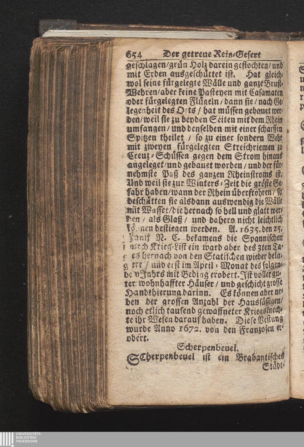Der getreue Reiß-Gefert durch Ober- und Nieder-Teutschland : Das ist: Grundrichtige und ausführliche Abhandlung derer jenigen Residenzien/ Städte/ Schlösser/ Vestungen/ Städtlein und nahmhafften Markflecken/ welche so wol in Ober- als Nieder-Teutschland/ einem Reisenden sich hin und wieder vorstellig machen und zwar solcher Gestalt/ daß darinn derer Ursprung/ Aufnahm/ Fortification/ Raritäten/ herrliche Gebäue/ und Glück- und Unglücks-Fälle bis auf gegenwärtige Zeit fortgesetzt enthalten. Dabey auch noch über das ein absonderlicher kurz-gefasster Weegweiser angehänget zu finden/ worinnen klärlich zu sehen, wie viel Meilen ein Ort von dem andern entlegen. Alles aus denen bewährtesten Scribenten hervorgesuchet/ zum Nutz-Ergötzen mitgetheilet ...