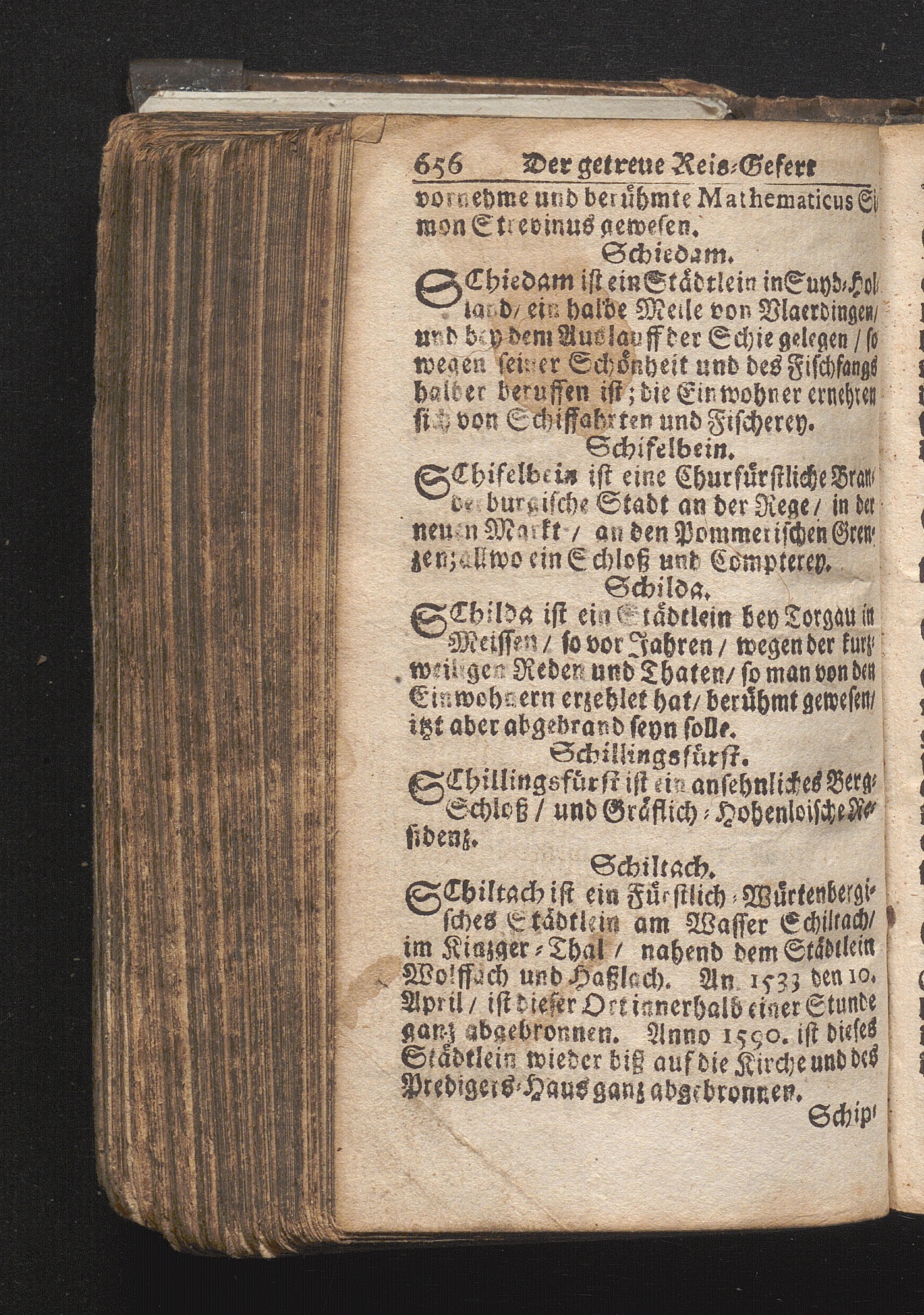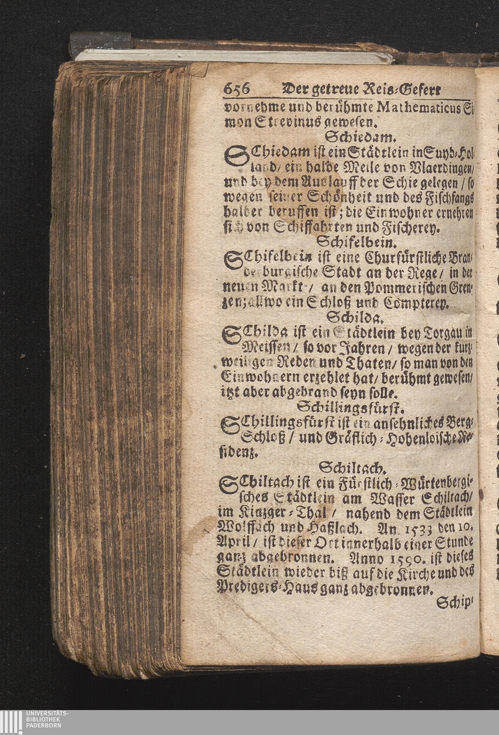Der getreue Reiß-Gefert durch Ober- und Nieder-Teutschland : Das ist: Grundrichtige und ausführliche Abhandlung derer jenigen Residenzien/ Städte/ Schlösser/ Vestungen/ Städtlein und nahmhafften Markflecken/ welche so wol in Ober- als Nieder-Teutschland/ einem Reisenden sich hin und wieder vorstellig machen und zwar solcher Gestalt/ daß darinn derer Ursprung/ Aufnahm/ Fortification/ Raritäten/ herrliche Gebäue/ und Glück- und Unglücks-Fälle bis auf gegenwärtige Zeit fortgesetzt enthalten. Dabey auch noch über das ein absonderlicher kurz-gefasster Weegweiser angehänget zu finden/ worinnen klärlich zu sehen, wie viel Meilen ein Ort von dem andern entlegen. Alles aus denen bewährtesten Scribenten hervorgesuchet/ zum Nutz-Ergötzen mitgetheilet ...