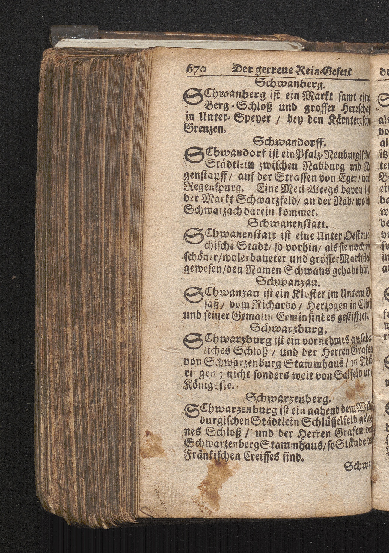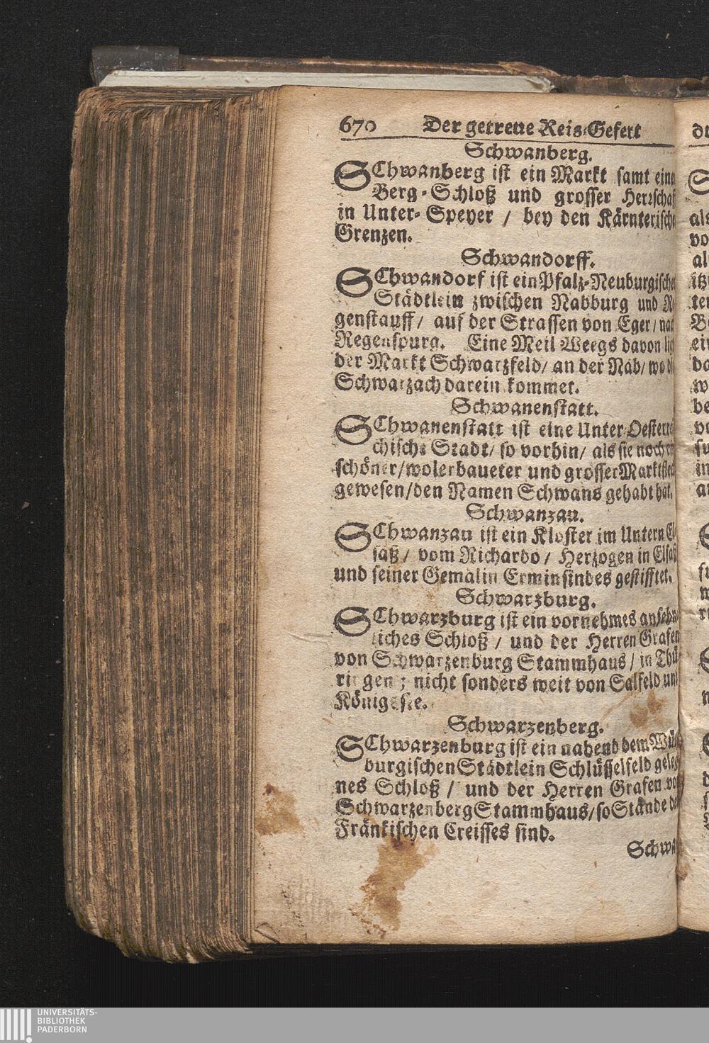 Der getreue Reiß-Gefert durch Ober- und Nieder-Teutschland : Das ist: Grundrichtige und ausführliche Abhandlung derer jenigen Residenzien/ Städte/ Schlösser/ Vestungen/ Städtlein und nahmhafften Markflecken/ welche so wol in Ober- als Nieder-Teutschland/ einem Reisenden sich hin und wieder vorstellig machen und zwar solcher Gestalt/ daß darinn derer Ursprung/ Aufnahm/ Fortification/ Raritäten/ herrliche Gebäue/ und Glück- und Unglücks-Fälle bis auf gegenwärtige Zeit fortgesetzt enthalten. Dabey auch noch über das ein absonderlicher kurz-gefasster Weegweiser angehänget zu finden/ worinnen klärlich zu sehen, wie viel Meilen ein Ort von dem andern entlegen. Alles aus denen bewährtesten Scribenten hervorgesuchet/ zum Nutz-Ergötzen mitgetheilet ...