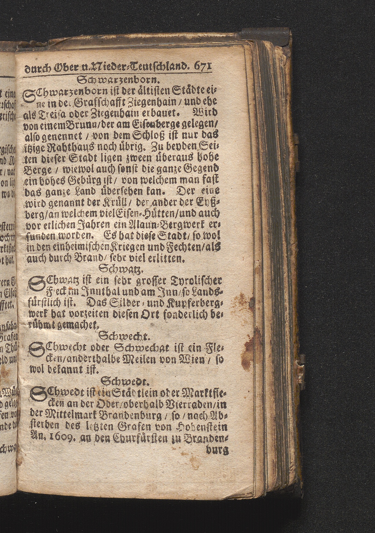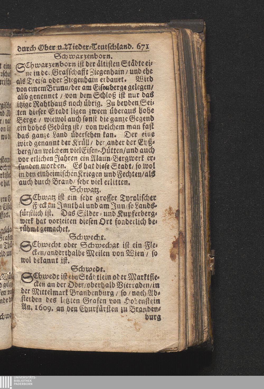 Der getreue Reiß-Gefert durch Ober- und Nieder-Teutschland : Das ist: Grundrichtige und ausführliche Abhandlung derer jenigen Residenzien/ Städte/ Schlösser/ Vestungen/ Städtlein und nahmhafften Markflecken/ welche so wol in Ober- als Nieder-Teutschland/ einem Reisenden sich hin und wieder vorstellig machen und zwar solcher Gestalt/ daß darinn derer Ursprung/ Aufnahm/ Fortification/ Raritäten/ herrliche Gebäue/ und Glück- und Unglücks-Fälle bis auf gegenwärtige Zeit fortgesetzt enthalten. Dabey auch noch über das ein absonderlicher kurz-gefasster Weegweiser angehänget zu finden/ worinnen klärlich zu sehen, wie viel Meilen ein Ort von dem andern entlegen. Alles aus denen bewährtesten Scribenten hervorgesuchet/ zum Nutz-Ergötzen mitgetheilet ...