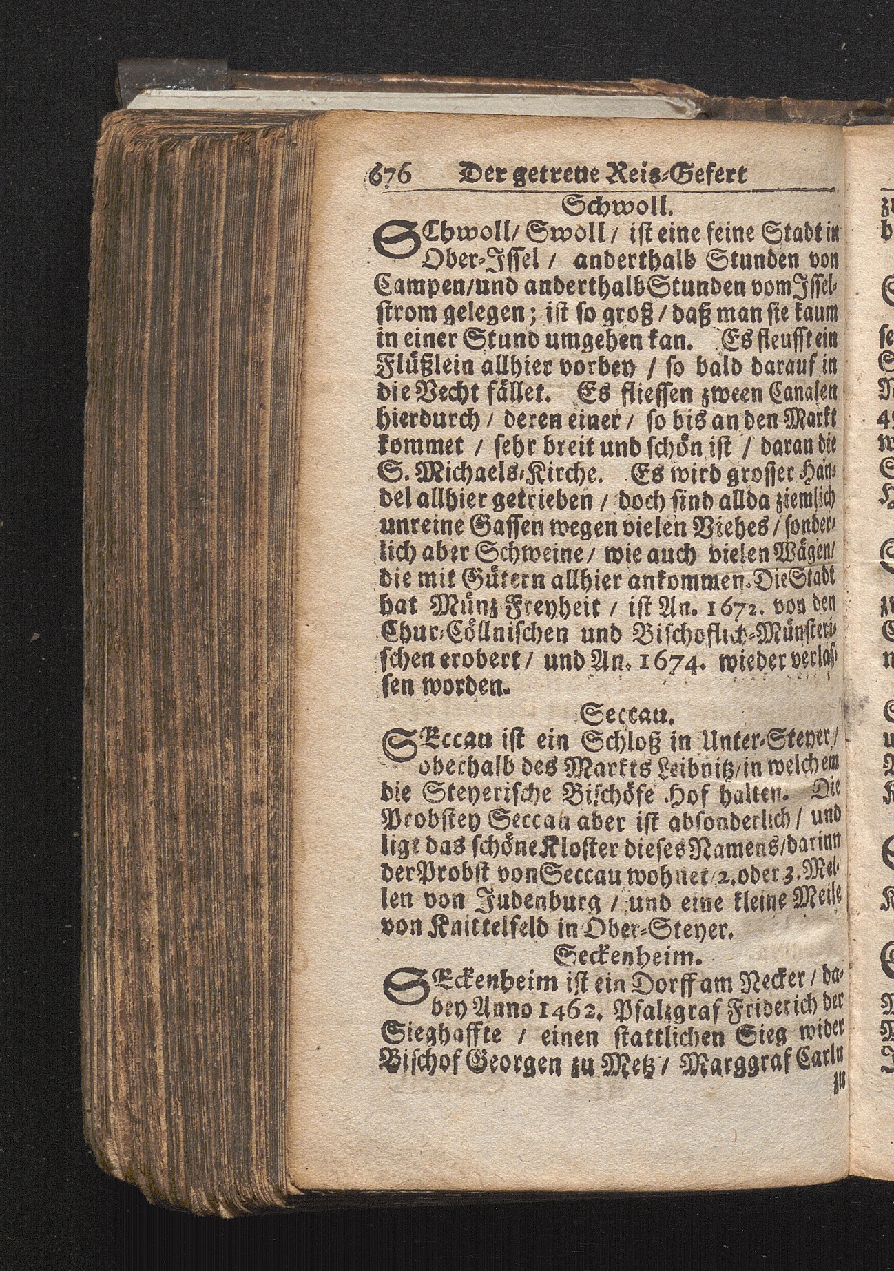 Der getreue Reiß-Gefert durch Ober- und Nieder-Teutschland : Das ist: Grundrichtige und ausführliche Abhandlung derer jenigen Residenzien/ Städte/ Schlösser/ Vestungen/ Städtlein und nahmhafften Markflecken/ welche so wol in Ober- als Nieder-Teutschland/ einem Reisenden sich hin und wieder vorstellig machen und zwar solcher Gestalt/ daß darinn derer Ursprung/ Aufnahm/ Fortification/ Raritäten/ herrliche Gebäue/ und Glück- und Unglücks-Fälle bis auf gegenwärtige Zeit fortgesetzt enthalten. Dabey auch noch über das ein absonderlicher kurz-gefasster Weegweiser angehänget zu finden/ worinnen klärlich zu sehen, wie viel Meilen ein Ort von dem andern entlegen. Alles aus denen bewährtesten Scribenten hervorgesuchet/ zum Nutz-Ergötzen mitgetheilet ...