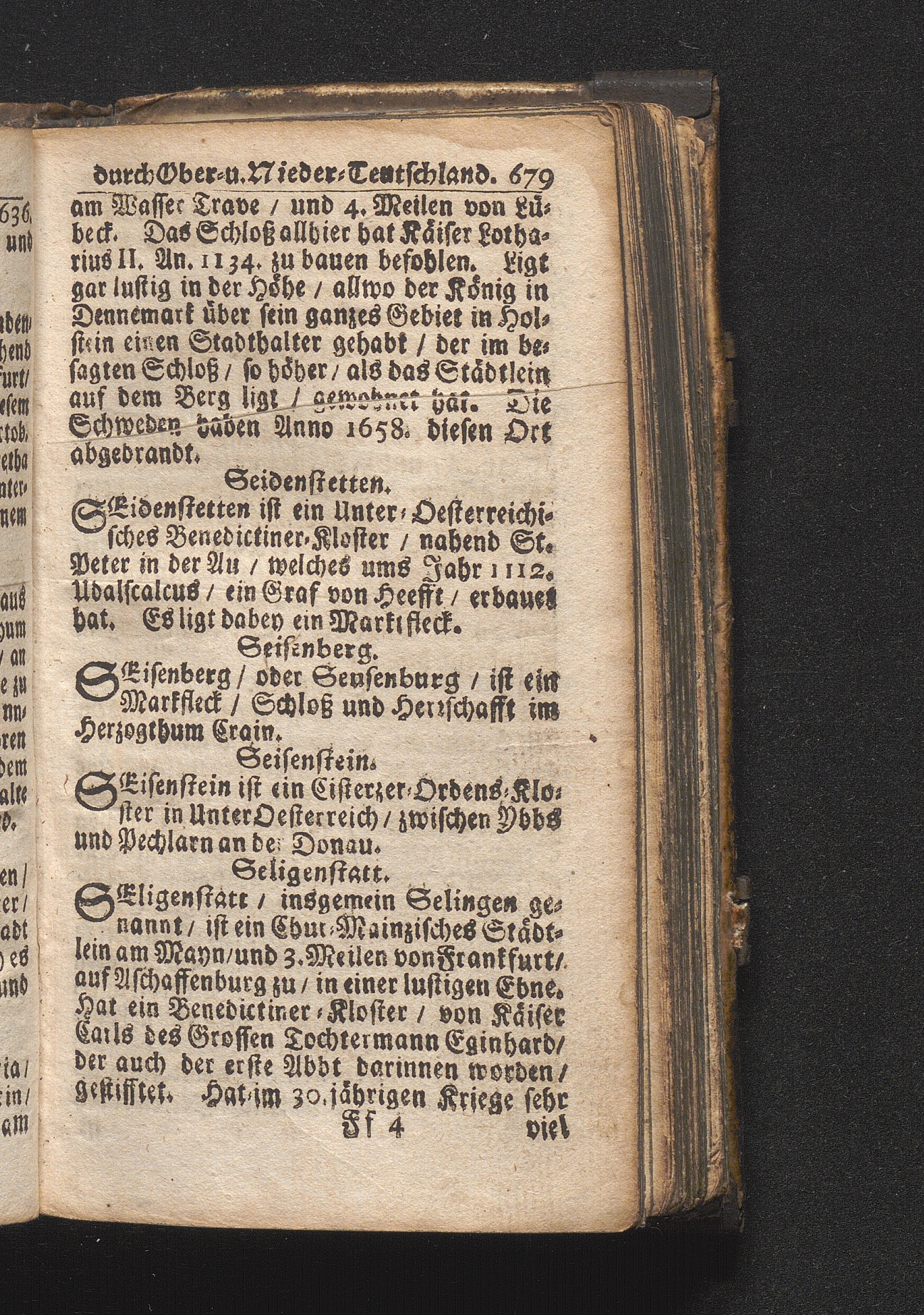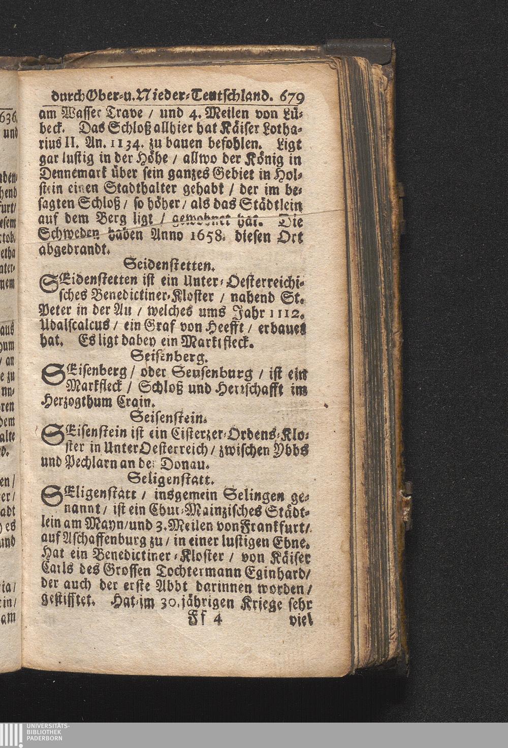 Der getreue Reiß-Gefert durch Ober- und Nieder-Teutschland : Das ist: Grundrichtige und ausführliche Abhandlung derer jenigen Residenzien/ Städte/ Schlösser/ Vestungen/ Städtlein und nahmhafften Markflecken/ welche so wol in Ober- als Nieder-Teutschland/ einem Reisenden sich hin und wieder vorstellig machen und zwar solcher Gestalt/ daß darinn derer Ursprung/ Aufnahm/ Fortification/ Raritäten/ herrliche Gebäue/ und Glück- und Unglücks-Fälle bis auf gegenwärtige Zeit fortgesetzt enthalten. Dabey auch noch über das ein absonderlicher kurz-gefasster Weegweiser angehänget zu finden/ worinnen klärlich zu sehen, wie viel Meilen ein Ort von dem andern entlegen. Alles aus denen bewährtesten Scribenten hervorgesuchet/ zum Nutz-Ergötzen mitgetheilet ...