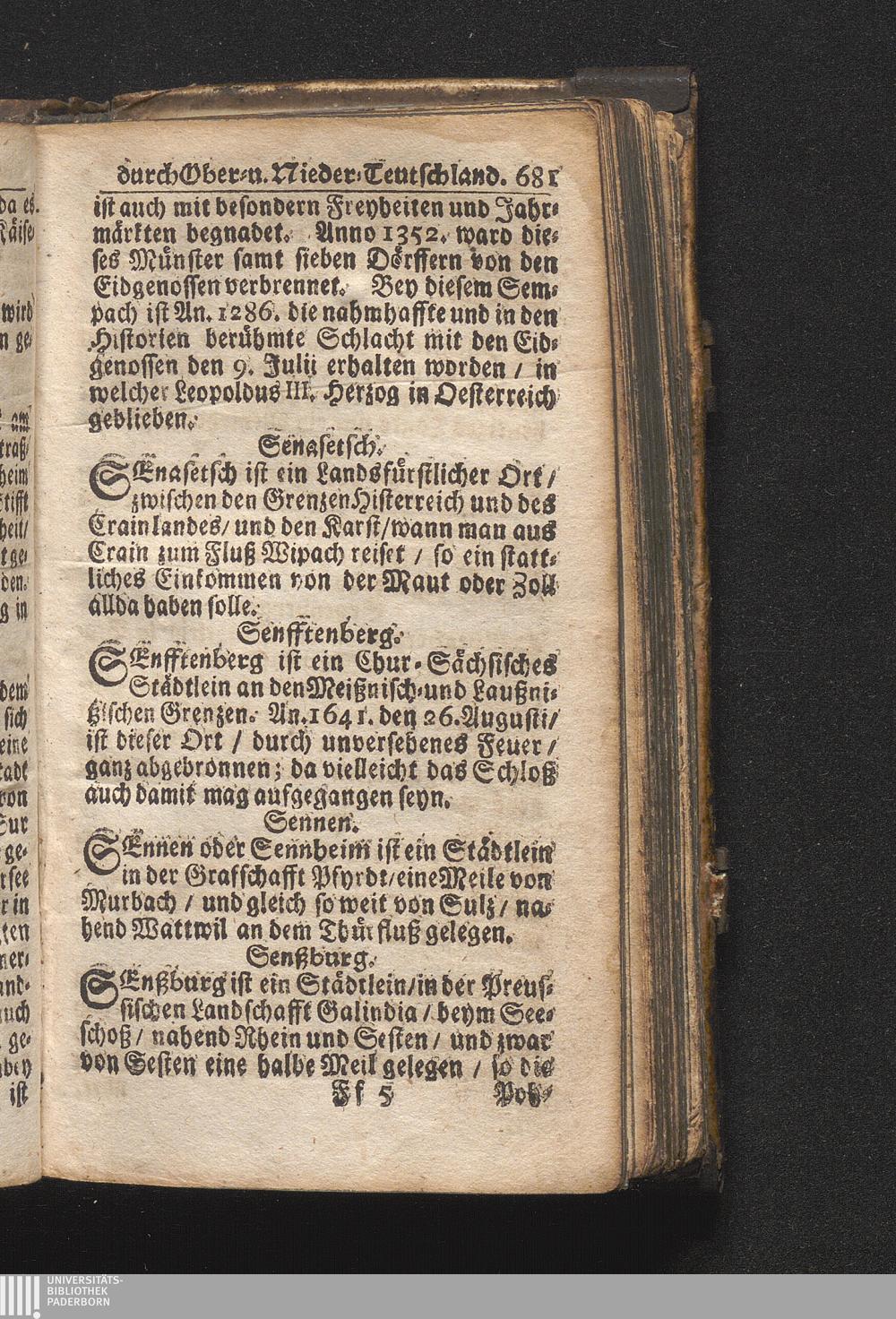 Der getreue Reiß-Gefert durch Ober- und Nieder-Teutschland : Das ist: Grundrichtige und ausführliche Abhandlung derer jenigen Residenzien/ Städte/ Schlösser/ Vestungen/ Städtlein und nahmhafften Markflecken/ welche so wol in Ober- als Nieder-Teutschland/ einem Reisenden sich hin und wieder vorstellig machen und zwar solcher Gestalt/ daß darinn derer Ursprung/ Aufnahm/ Fortification/ Raritäten/ herrliche Gebäue/ und Glück- und Unglücks-Fälle bis auf gegenwärtige Zeit fortgesetzt enthalten. Dabey auch noch über das ein absonderlicher kurz-gefasster Weegweiser angehänget zu finden/ worinnen klärlich zu sehen, wie viel Meilen ein Ort von dem andern entlegen. Alles aus denen bewährtesten Scribenten hervorgesuchet/ zum Nutz-Ergötzen mitgetheilet ...