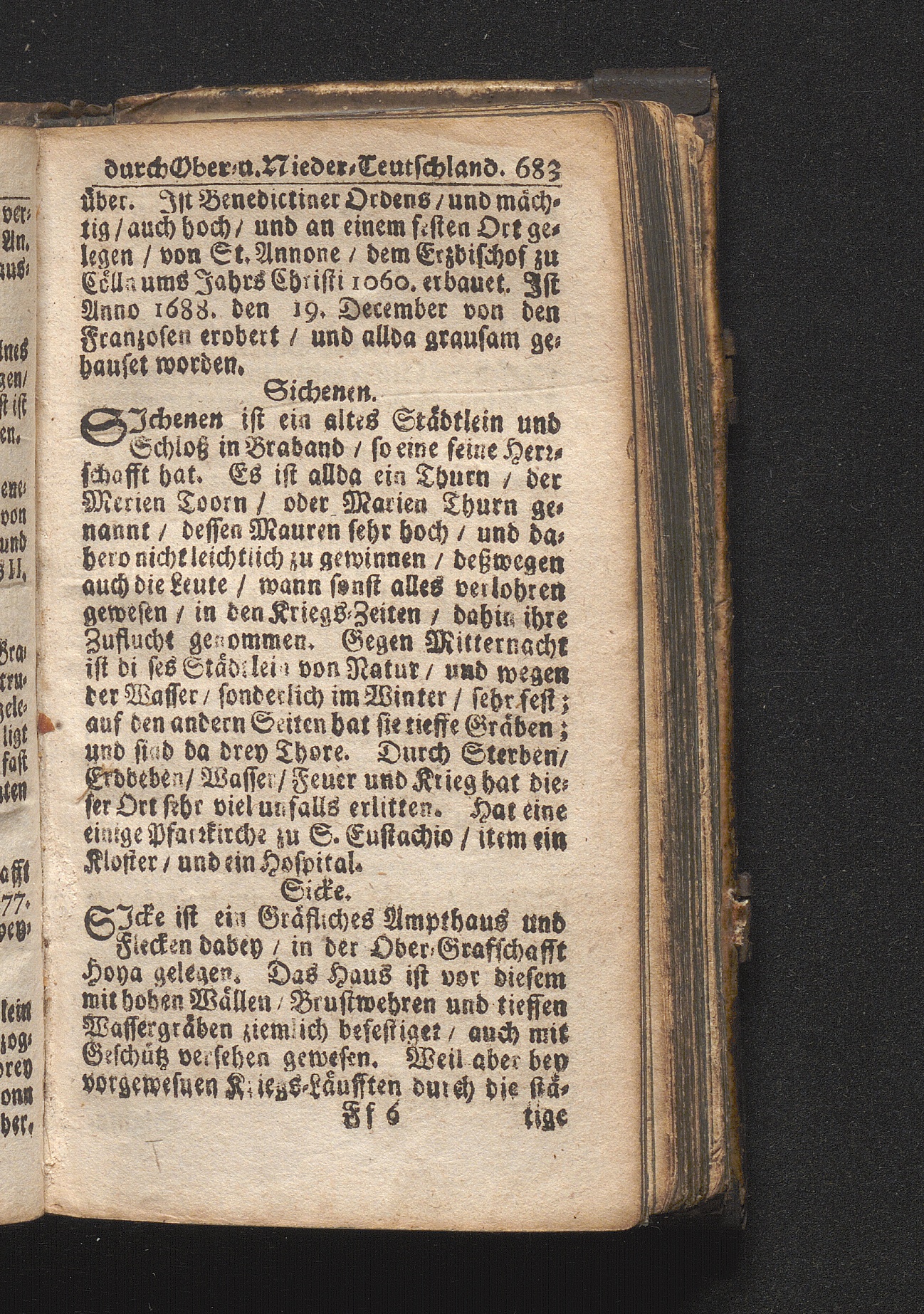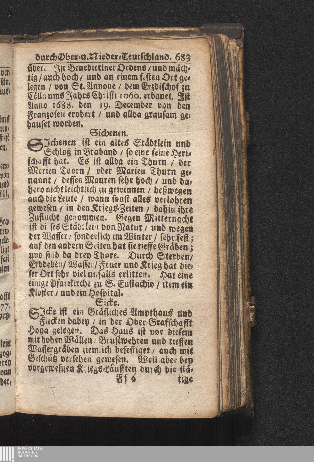 Der getreue Reiß-Gefert durch Ober- und Nieder-Teutschland : Das ist: Grundrichtige und ausführliche Abhandlung derer jenigen Residenzien/ Städte/ Schlösser/ Vestungen/ Städtlein und nahmhafften Markflecken/ welche so wol in Ober- als Nieder-Teutschland/ einem Reisenden sich hin und wieder vorstellig machen und zwar solcher Gestalt/ daß darinn derer Ursprung/ Aufnahm/ Fortification/ Raritäten/ herrliche Gebäue/ und Glück- und Unglücks-Fälle bis auf gegenwärtige Zeit fortgesetzt enthalten. Dabey auch noch über das ein absonderlicher kurz-gefasster Weegweiser angehänget zu finden/ worinnen klärlich zu sehen, wie viel Meilen ein Ort von dem andern entlegen. Alles aus denen bewährtesten Scribenten hervorgesuchet/ zum Nutz-Ergötzen mitgetheilet ...