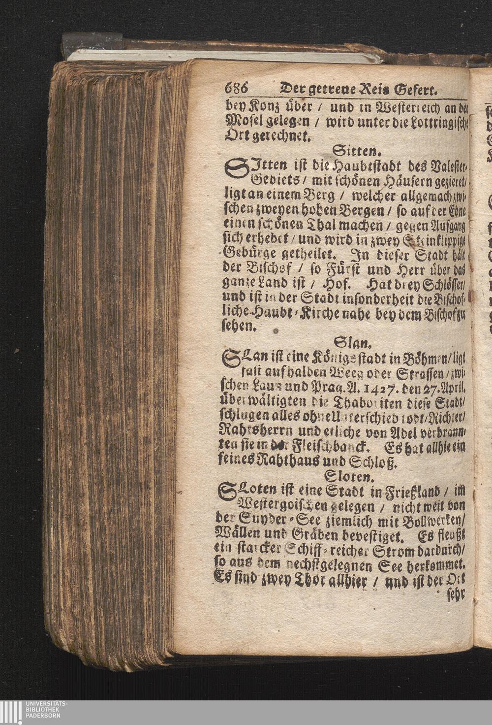 Der getreue Reiß-Gefert durch Ober- und Nieder-Teutschland : Das ist: Grundrichtige und ausführliche Abhandlung derer jenigen Residenzien/ Städte/ Schlösser/ Vestungen/ Städtlein und nahmhafften Markflecken/ welche so wol in Ober- als Nieder-Teutschland/ einem Reisenden sich hin und wieder vorstellig machen und zwar solcher Gestalt/ daß darinn derer Ursprung/ Aufnahm/ Fortification/ Raritäten/ herrliche Gebäue/ und Glück- und Unglücks-Fälle bis auf gegenwärtige Zeit fortgesetzt enthalten. Dabey auch noch über das ein absonderlicher kurz-gefasster Weegweiser angehänget zu finden/ worinnen klärlich zu sehen, wie viel Meilen ein Ort von dem andern entlegen. Alles aus denen bewährtesten Scribenten hervorgesuchet/ zum Nutz-Ergötzen mitgetheilet ...