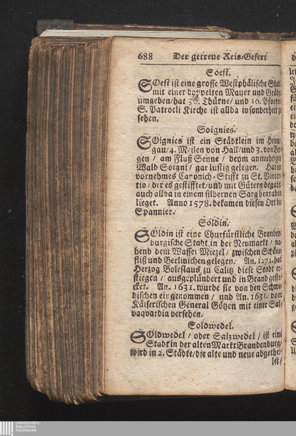 Der getreue Reiß-Gefert durch Ober- und Nieder-Teutschland : Das ist: Grundrichtige und ausführliche Abhandlung derer jenigen Residenzien/ Städte/ Schlösser/ Vestungen/ Städtlein und nahmhafften Markflecken/ welche so wol in Ober- als Nieder-Teutschland/ einem Reisenden sich hin und wieder vorstellig machen und zwar solcher Gestalt/ daß darinn derer Ursprung/ Aufnahm/ Fortification/ Raritäten/ herrliche Gebäue/ und Glück- und Unglücks-Fälle bis auf gegenwärtige Zeit fortgesetzt enthalten. Dabey auch noch über das ein absonderlicher kurz-gefasster Weegweiser angehänget zu finden/ worinnen klärlich zu sehen, wie viel Meilen ein Ort von dem andern entlegen. Alles aus denen bewährtesten Scribenten hervorgesuchet/ zum Nutz-Ergötzen mitgetheilet ...