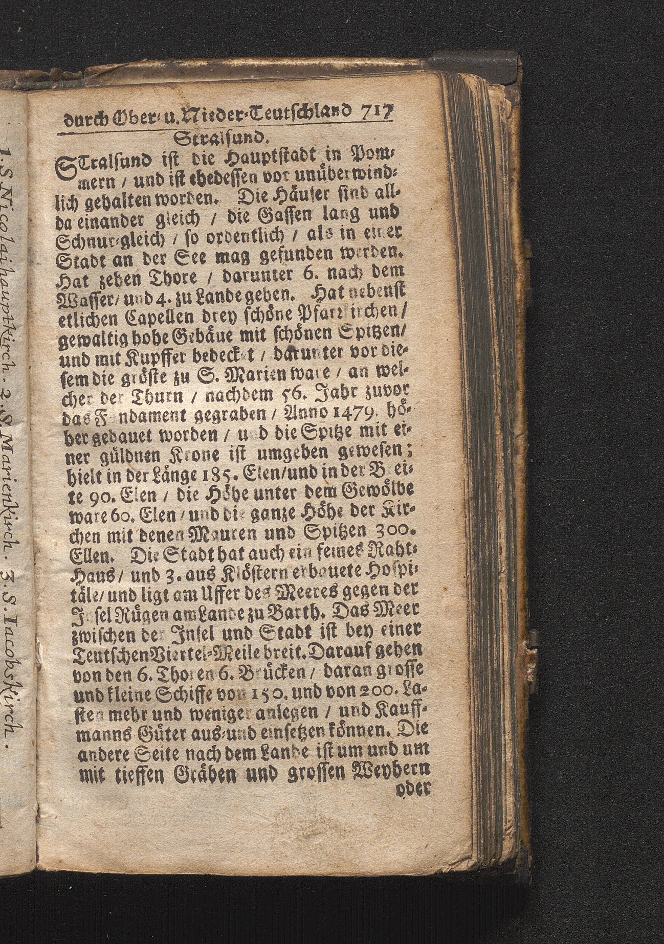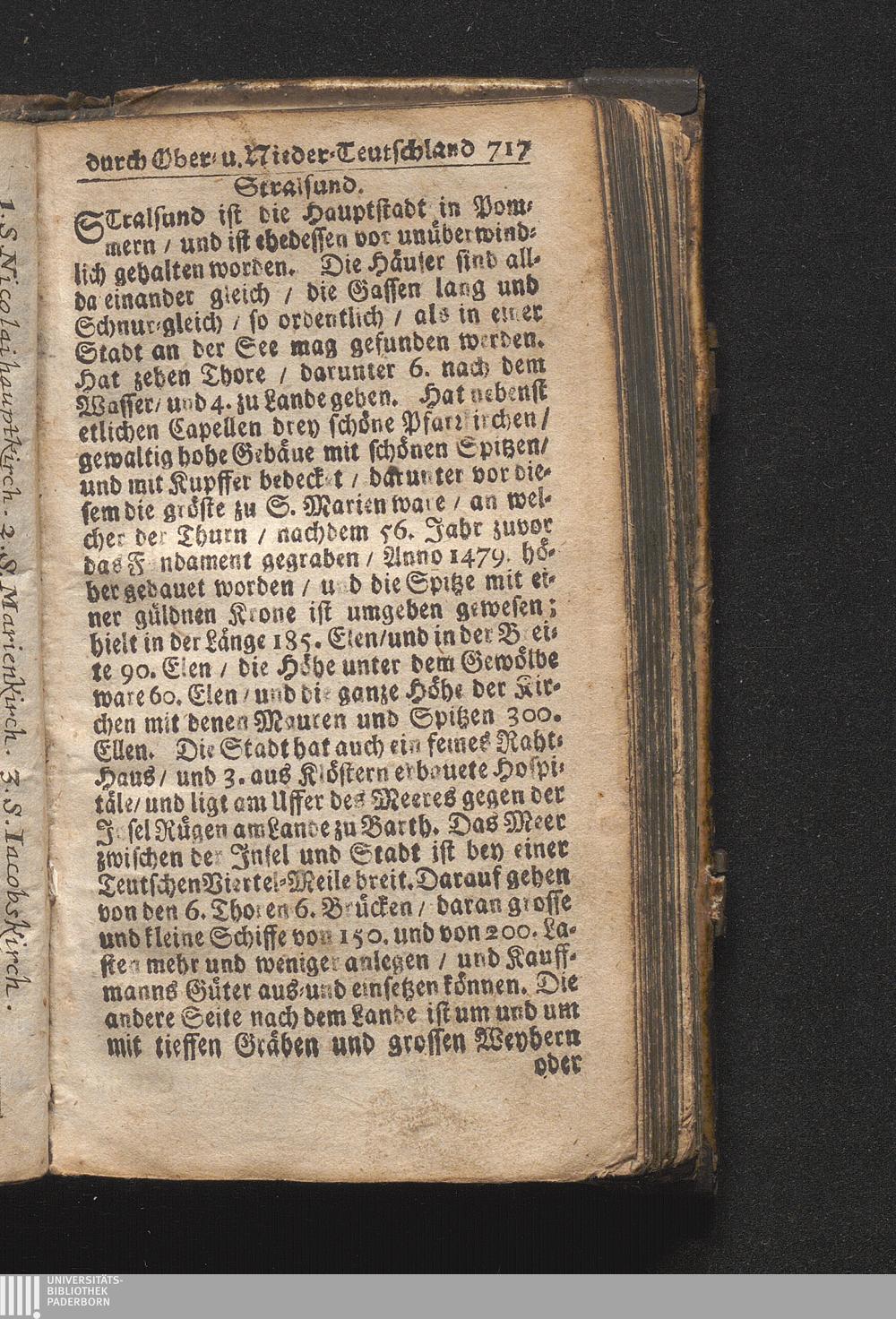 Der getreue Reiß-Gefert durch Ober- und Nieder-Teutschland : Das ist: Grundrichtige und ausführliche Abhandlung derer jenigen Residenzien/ Städte/ Schlösser/ Vestungen/ Städtlein und nahmhafften Markflecken/ welche so wol in Ober- als Nieder-Teutschland/ einem Reisenden sich hin und wieder vorstellig machen und zwar solcher Gestalt/ daß darinn derer Ursprung/ Aufnahm/ Fortification/ Raritäten/ herrliche Gebäue/ und Glück- und Unglücks-Fälle bis auf gegenwärtige Zeit fortgesetzt enthalten. Dabey auch noch über das ein absonderlicher kurz-gefasster Weegweiser angehänget zu finden/ worinnen klärlich zu sehen, wie viel Meilen ein Ort von dem andern entlegen. Alles aus denen bewährtesten Scribenten hervorgesuchet/ zum Nutz-Ergötzen mitgetheilet ...