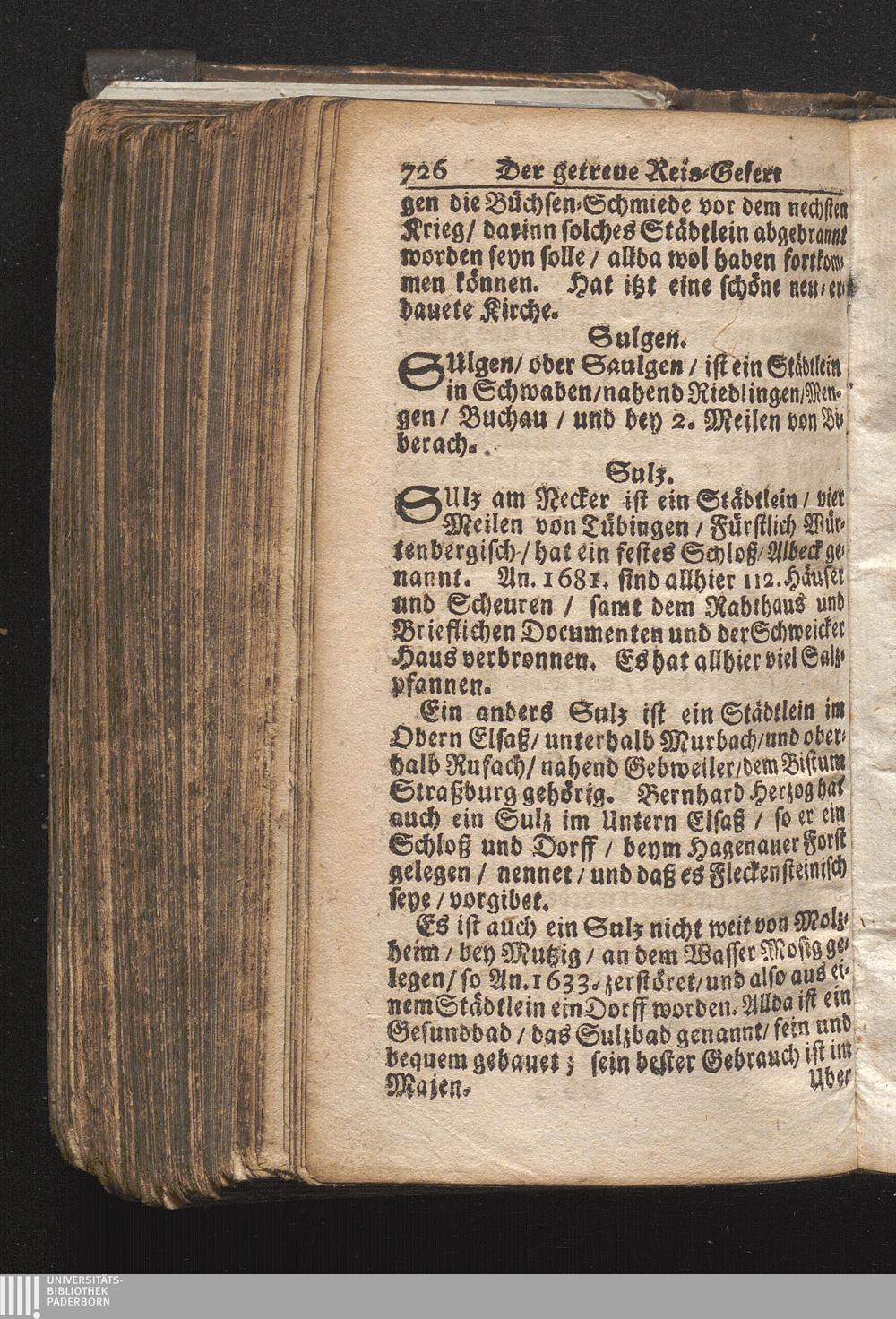 Der getreue Reiß-Gefert durch Ober- und Nieder-Teutschland : Das ist: Grundrichtige und ausführliche Abhandlung derer jenigen Residenzien/ Städte/ Schlösser/ Vestungen/ Städtlein und nahmhafften Markflecken/ welche so wol in Ober- als Nieder-Teutschland/ einem Reisenden sich hin und wieder vorstellig machen und zwar solcher Gestalt/ daß darinn derer Ursprung/ Aufnahm/ Fortification/ Raritäten/ herrliche Gebäue/ und Glück- und Unglücks-Fälle bis auf gegenwärtige Zeit fortgesetzt enthalten. Dabey auch noch über das ein absonderlicher kurz-gefasster Weegweiser angehänget zu finden/ worinnen klärlich zu sehen, wie viel Meilen ein Ort von dem andern entlegen. Alles aus denen bewährtesten Scribenten hervorgesuchet/ zum Nutz-Ergötzen mitgetheilet ...