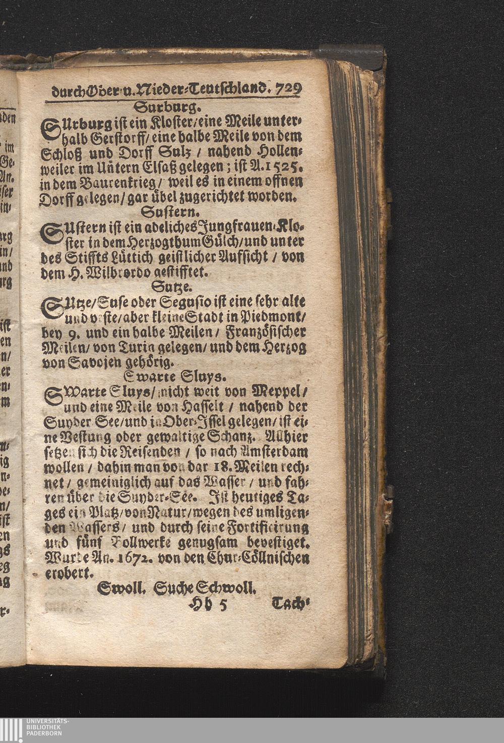 Der getreue Reiß-Gefert durch Ober- und Nieder-Teutschland : Das ist: Grundrichtige und ausführliche Abhandlung derer jenigen Residenzien/ Städte/ Schlösser/ Vestungen/ Städtlein und nahmhafften Markflecken/ welche so wol in Ober- als Nieder-Teutschland/ einem Reisenden sich hin und wieder vorstellig machen und zwar solcher Gestalt/ daß darinn derer Ursprung/ Aufnahm/ Fortification/ Raritäten/ herrliche Gebäue/ und Glück- und Unglücks-Fälle bis auf gegenwärtige Zeit fortgesetzt enthalten. Dabey auch noch über das ein absonderlicher kurz-gefasster Weegweiser angehänget zu finden/ worinnen klärlich zu sehen, wie viel Meilen ein Ort von dem andern entlegen. Alles aus denen bewährtesten Scribenten hervorgesuchet/ zum Nutz-Ergötzen mitgetheilet ...