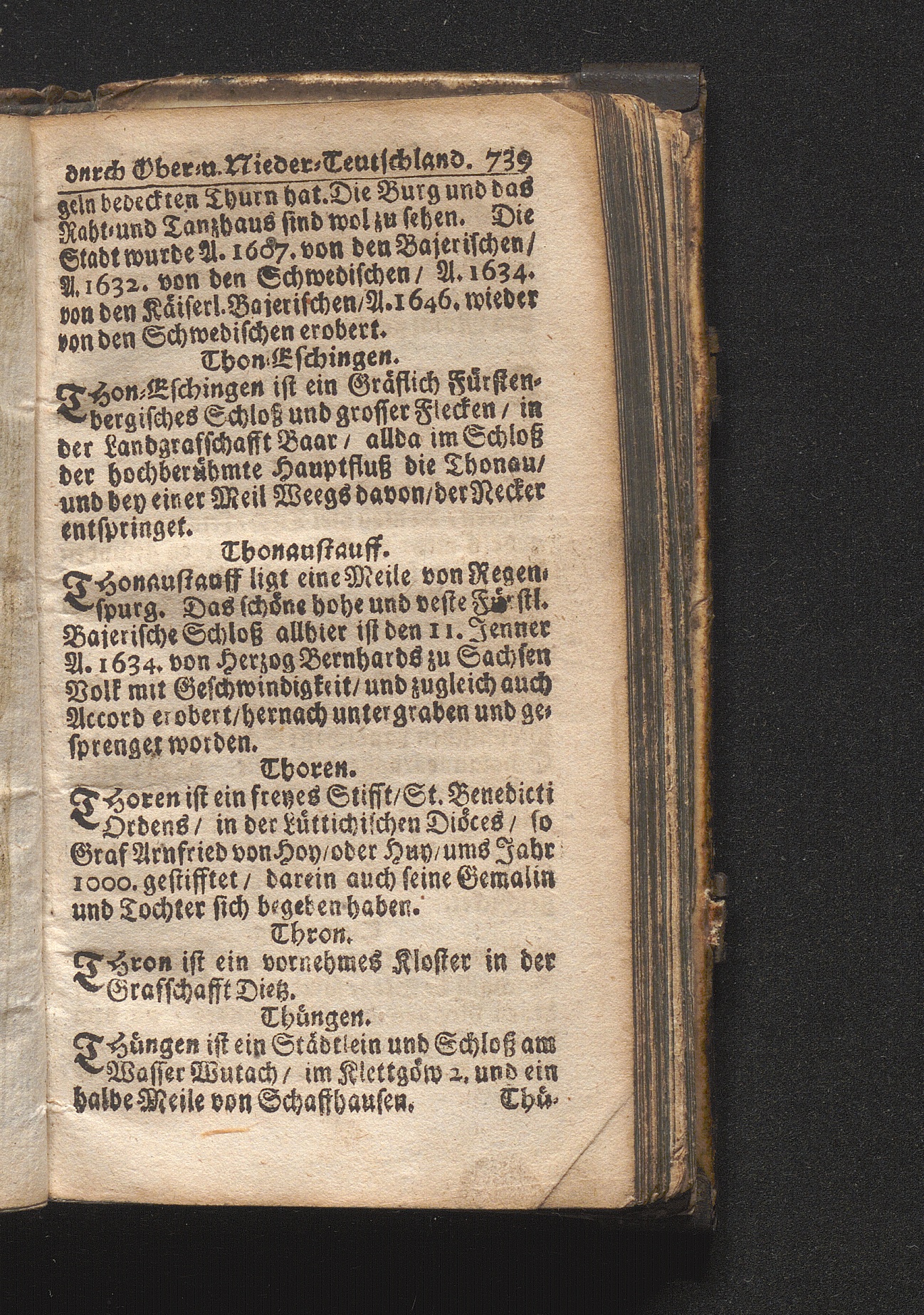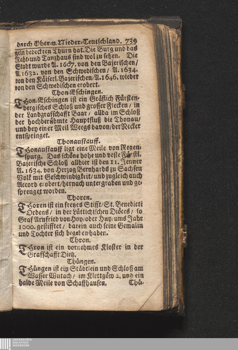 Der getreue Reiß-Gefert durch Ober- und Nieder-Teutschland : Das ist: Grundrichtige und ausführliche Abhandlung derer jenigen Residenzien/ Städte/ Schlösser/ Vestungen/ Städtlein und nahmhafften Markflecken/ welche so wol in Ober- als Nieder-Teutschland/ einem Reisenden sich hin und wieder vorstellig machen und zwar solcher Gestalt/ daß darinn derer Ursprung/ Aufnahm/ Fortification/ Raritäten/ herrliche Gebäue/ und Glück- und Unglücks-Fälle bis auf gegenwärtige Zeit fortgesetzt enthalten. Dabey auch noch über das ein absonderlicher kurz-gefasster Weegweiser angehänget zu finden/ worinnen klärlich zu sehen, wie viel Meilen ein Ort von dem andern entlegen. Alles aus denen bewährtesten Scribenten hervorgesuchet/ zum Nutz-Ergötzen mitgetheilet ...