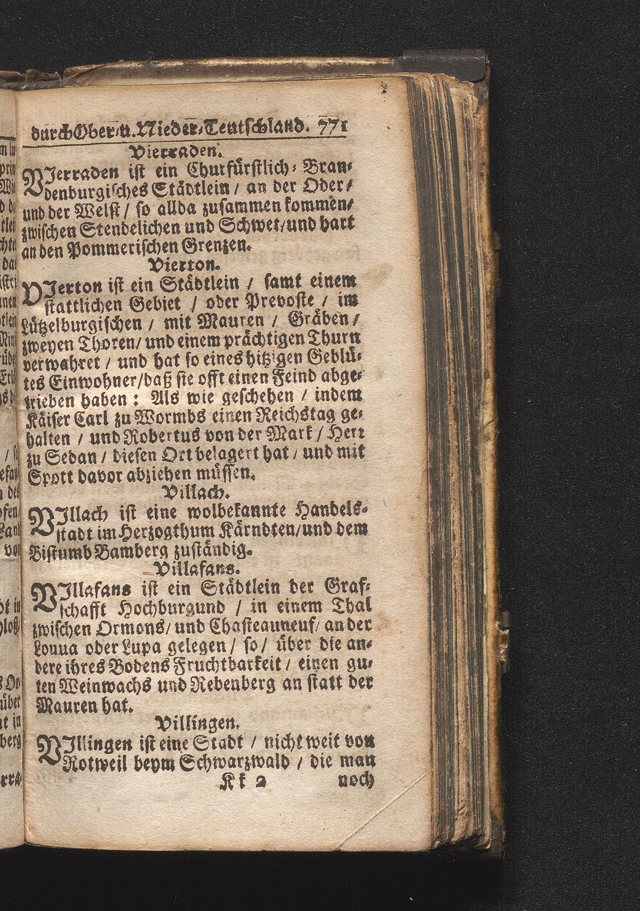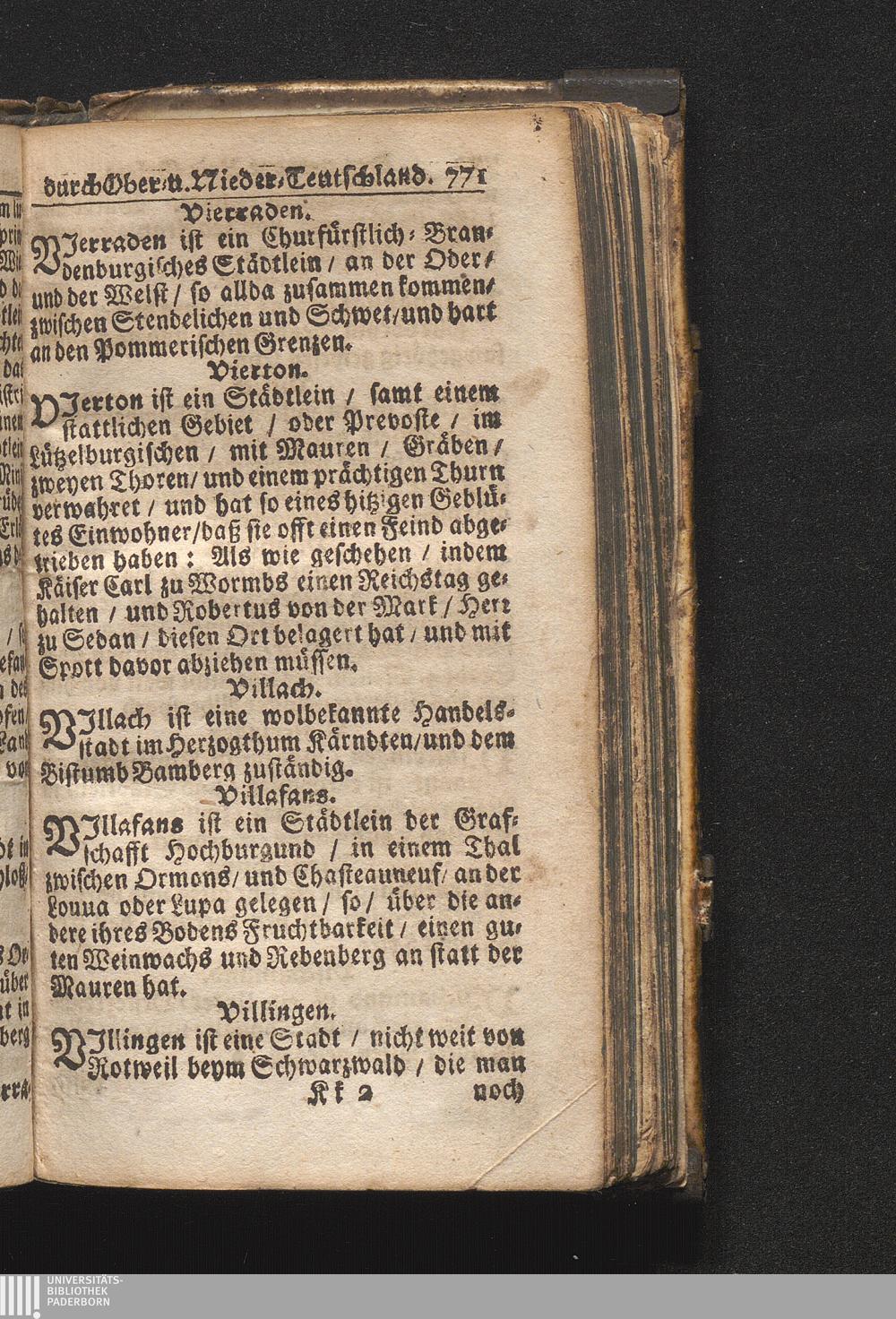 Der getreue Reiß-Gefert durch Ober- und Nieder-Teutschland : Das ist: Grundrichtige und ausführliche Abhandlung derer jenigen Residenzien/ Städte/ Schlösser/ Vestungen/ Städtlein und nahmhafften Markflecken/ welche so wol in Ober- als Nieder-Teutschland/ einem Reisenden sich hin und wieder vorstellig machen und zwar solcher Gestalt/ daß darinn derer Ursprung/ Aufnahm/ Fortification/ Raritäten/ herrliche Gebäue/ und Glück- und Unglücks-Fälle bis auf gegenwärtige Zeit fortgesetzt enthalten. Dabey auch noch über das ein absonderlicher kurz-gefasster Weegweiser angehänget zu finden/ worinnen klärlich zu sehen, wie viel Meilen ein Ort von dem andern entlegen. Alles aus denen bewährtesten Scribenten hervorgesuchet/ zum Nutz-Ergötzen mitgetheilet ...