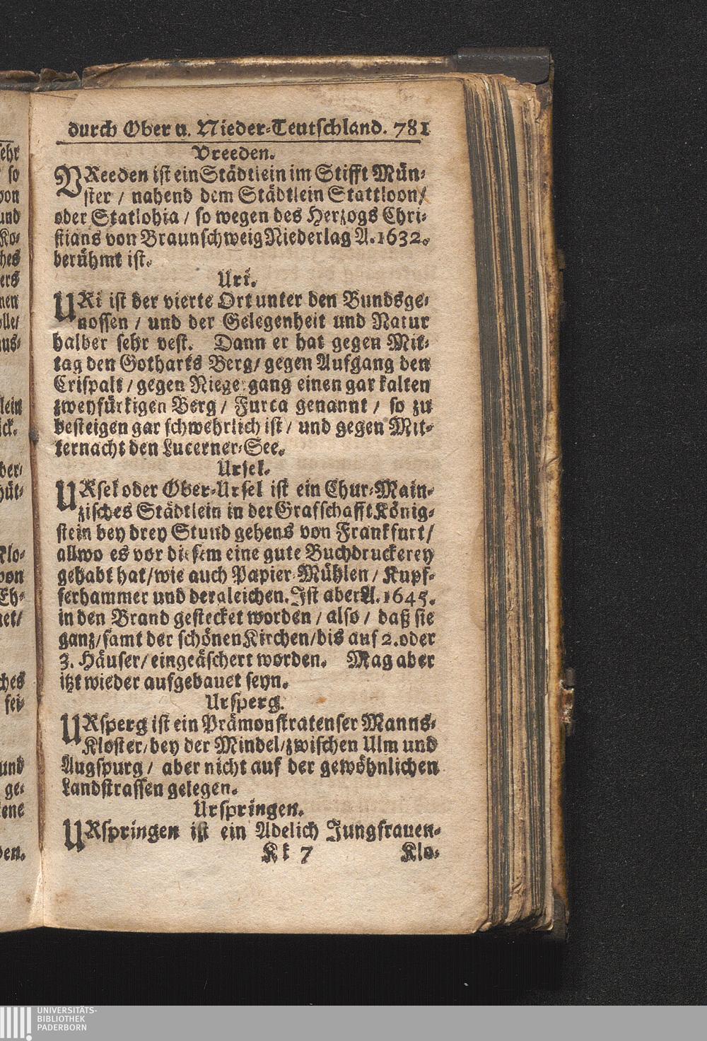 Der getreue Reiß-Gefert durch Ober- und Nieder-Teutschland : Das ist: Grundrichtige und ausführliche Abhandlung derer jenigen Residenzien/ Städte/ Schlösser/ Vestungen/ Städtlein und nahmhafften Markflecken/ welche so wol in Ober- als Nieder-Teutschland/ einem Reisenden sich hin und wieder vorstellig machen und zwar solcher Gestalt/ daß darinn derer Ursprung/ Aufnahm/ Fortification/ Raritäten/ herrliche Gebäue/ und Glück- und Unglücks-Fälle bis auf gegenwärtige Zeit fortgesetzt enthalten. Dabey auch noch über das ein absonderlicher kurz-gefasster Weegweiser angehänget zu finden/ worinnen klärlich zu sehen, wie viel Meilen ein Ort von dem andern entlegen. Alles aus denen bewährtesten Scribenten hervorgesuchet/ zum Nutz-Ergötzen mitgetheilet ...