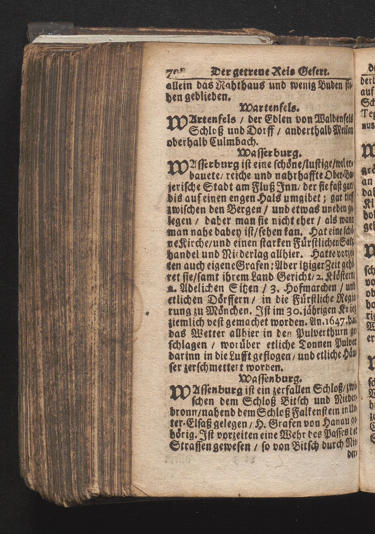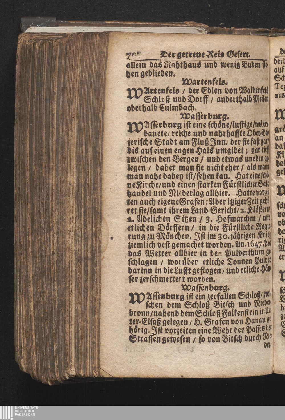 Der getreue Reiß-Gefert durch Ober- und Nieder-Teutschland : Das ist: Grundrichtige und ausführliche Abhandlung derer jenigen Residenzien/ Städte/ Schlösser/ Vestungen/ Städtlein und nahmhafften Markflecken/ welche so wol in Ober- als Nieder-Teutschland/ einem Reisenden sich hin und wieder vorstellig machen und zwar solcher Gestalt/ daß darinn derer Ursprung/ Aufnahm/ Fortification/ Raritäten/ herrliche Gebäue/ und Glück- und Unglücks-Fälle bis auf gegenwärtige Zeit fortgesetzt enthalten. Dabey auch noch über das ein absonderlicher kurz-gefasster Weegweiser angehänget zu finden/ worinnen klärlich zu sehen, wie viel Meilen ein Ort von dem andern entlegen. Alles aus denen bewährtesten Scribenten hervorgesuchet/ zum Nutz-Ergötzen mitgetheilet ...