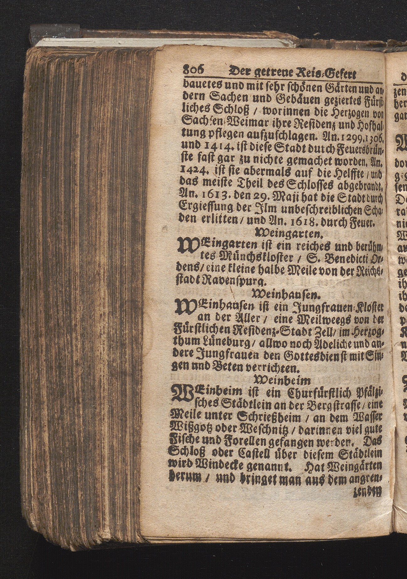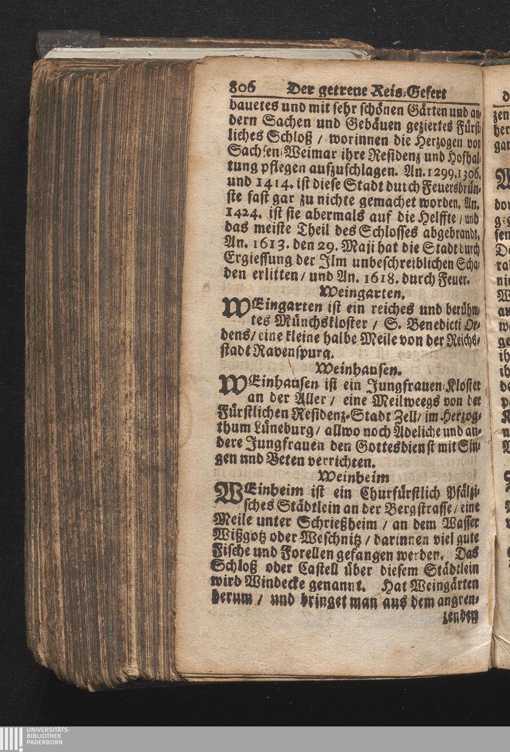 Der getreue Reiß-Gefert durch Ober- und Nieder-Teutschland : Das ist: Grundrichtige und ausführliche Abhandlung derer jenigen Residenzien/ Städte/ Schlösser/ Vestungen/ Städtlein und nahmhafften Markflecken/ welche so wol in Ober- als Nieder-Teutschland/ einem Reisenden sich hin und wieder vorstellig machen und zwar solcher Gestalt/ daß darinn derer Ursprung/ Aufnahm/ Fortification/ Raritäten/ herrliche Gebäue/ und Glück- und Unglücks-Fälle bis auf gegenwärtige Zeit fortgesetzt enthalten. Dabey auch noch über das ein absonderlicher kurz-gefasster Weegweiser angehänget zu finden/ worinnen klärlich zu sehen, wie viel Meilen ein Ort von dem andern entlegen. Alles aus denen bewährtesten Scribenten hervorgesuchet/ zum Nutz-Ergötzen mitgetheilet ...